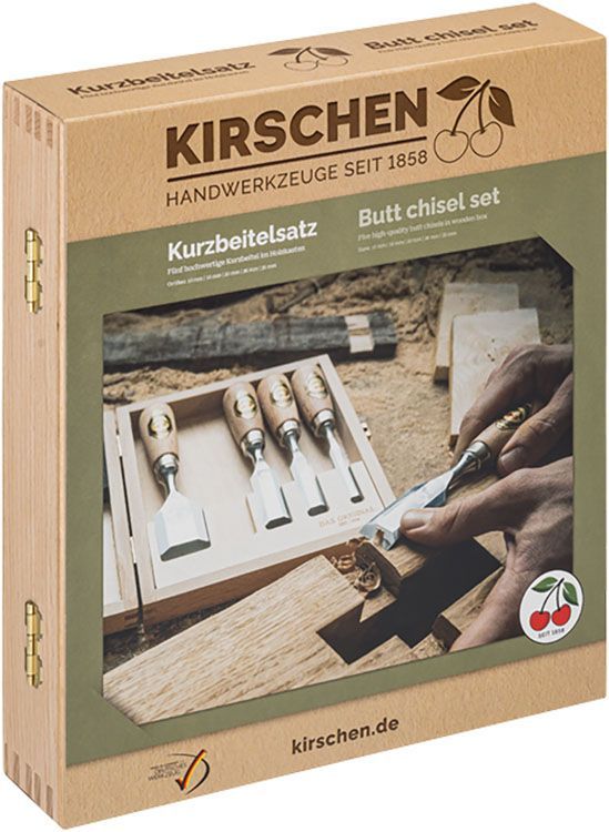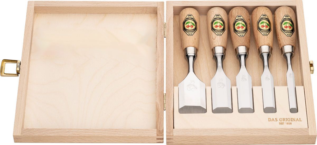 KIRSCHEN Kirschen Kurzbeitelsatz im Holzkasten 5-tlg. mit Rotbuchenheft 10-16-20-26-35 mm