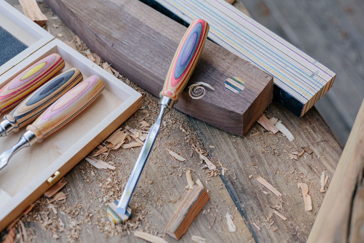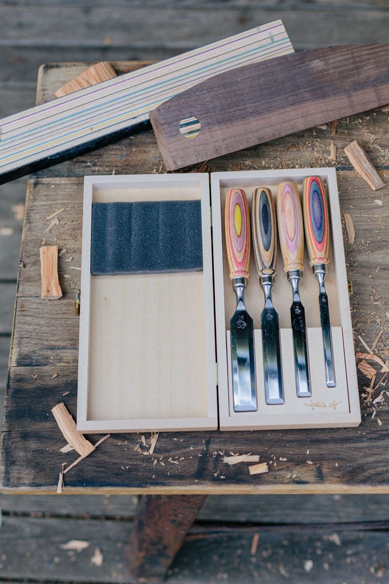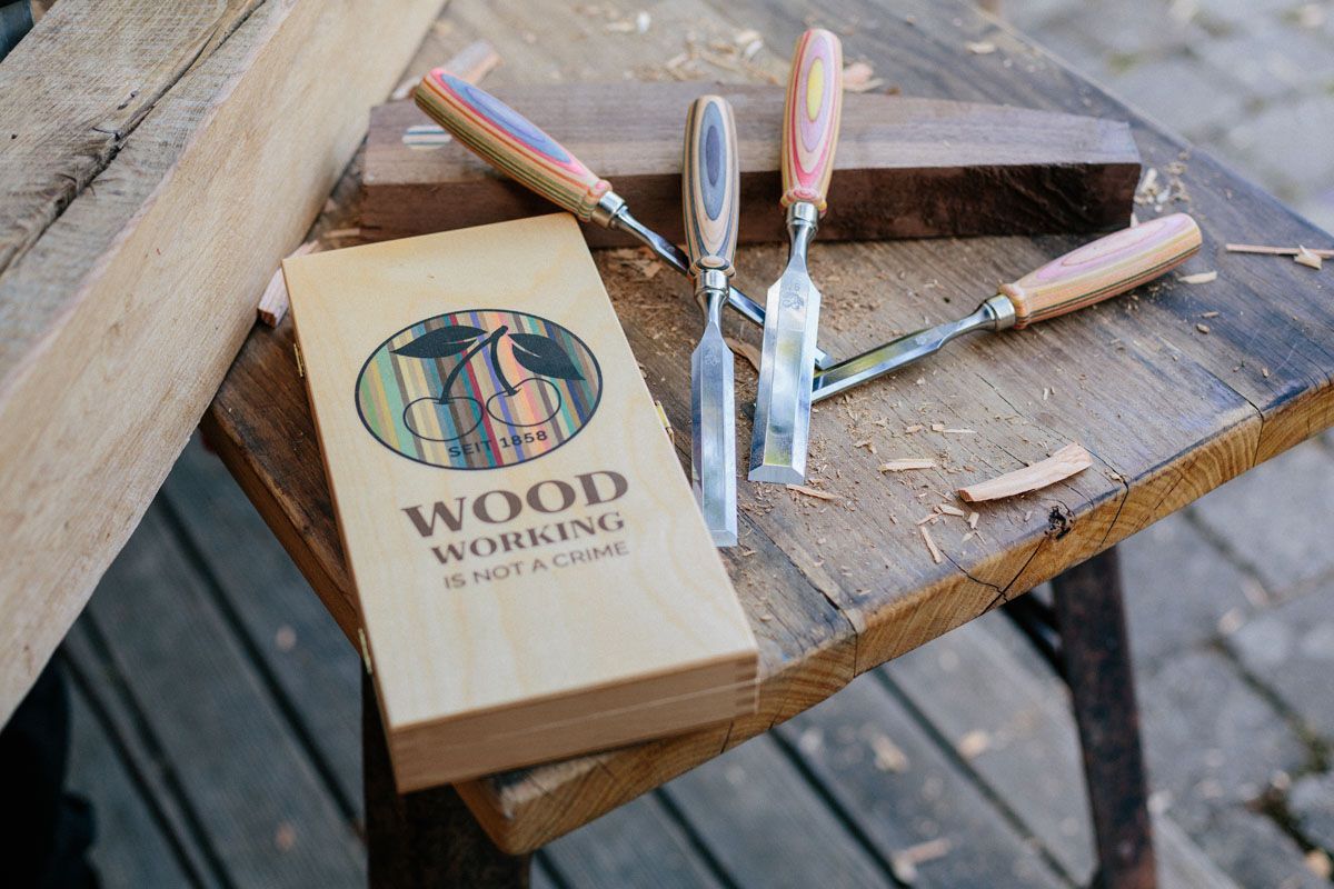 KIRSCHEN Kirschen Stechbeitelsatz W.I.N.A.C. im Holzkasten 4-tlg. mit Skateboardheft 10-16