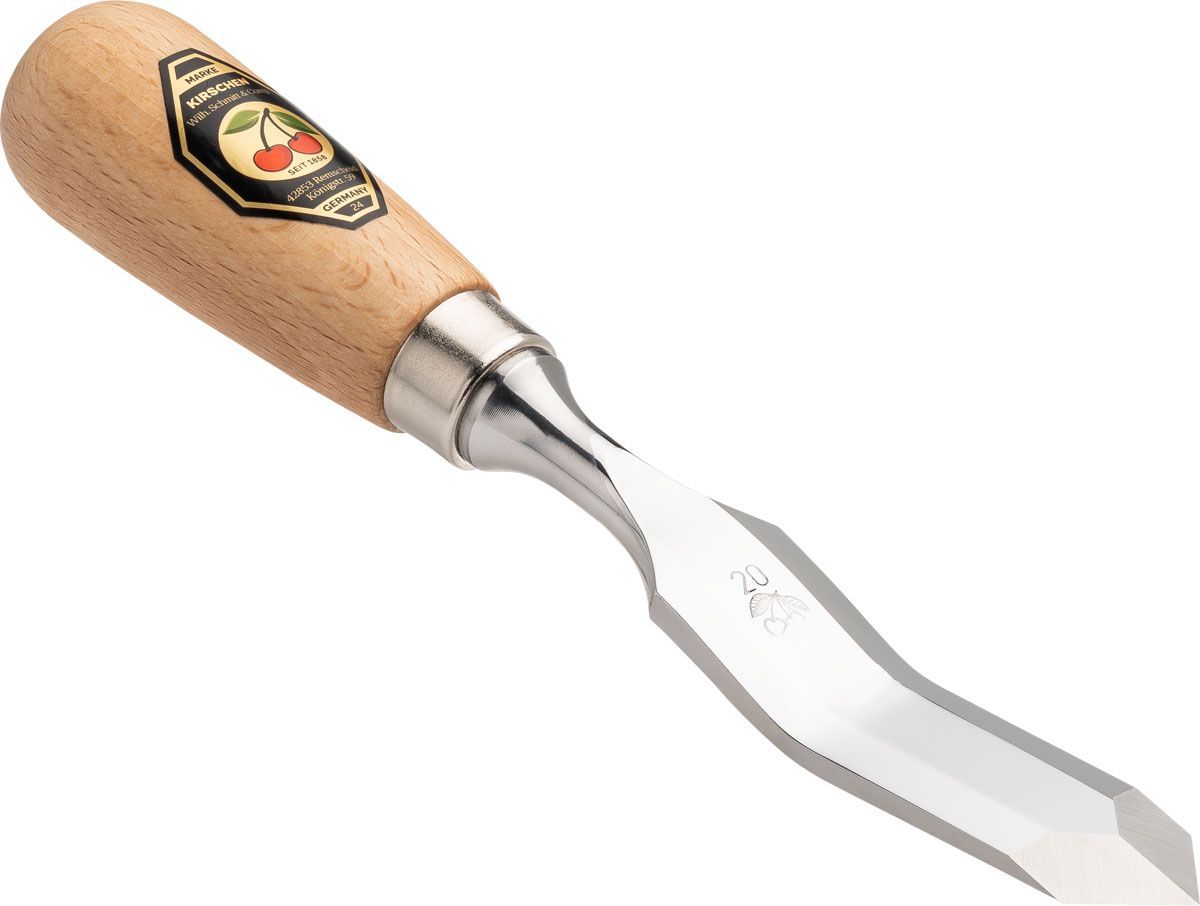 KIRSCHEN Kirschen Stufenbeitel mit Rotbuchenheft 20 mm gekröpft | spitze Schneide | Leder-S