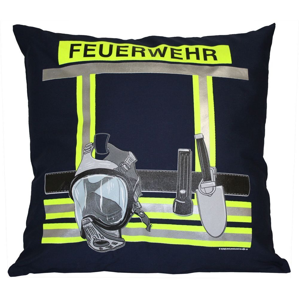 Kissen mit Print - Feuerwehr - ca. 40 x 40 cm - 11611 - Dekokissen Autokissen - Navy