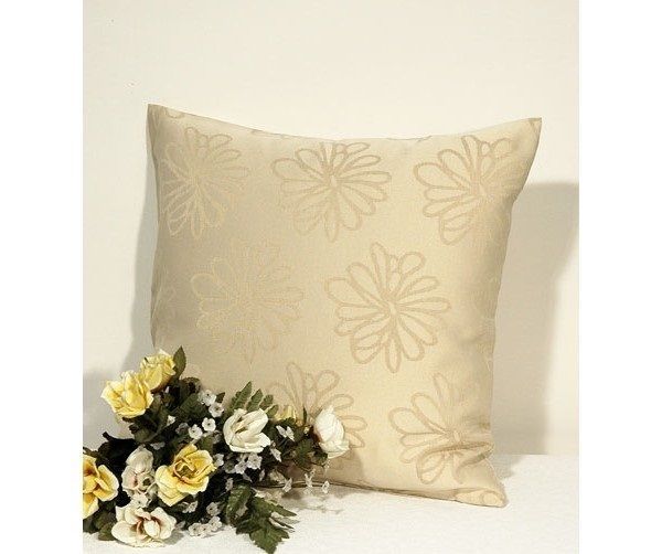 Kissenbezug 50x50 Kissenhülle Deko Kissen Hülle Beige Satin Modern Blumen Sommer