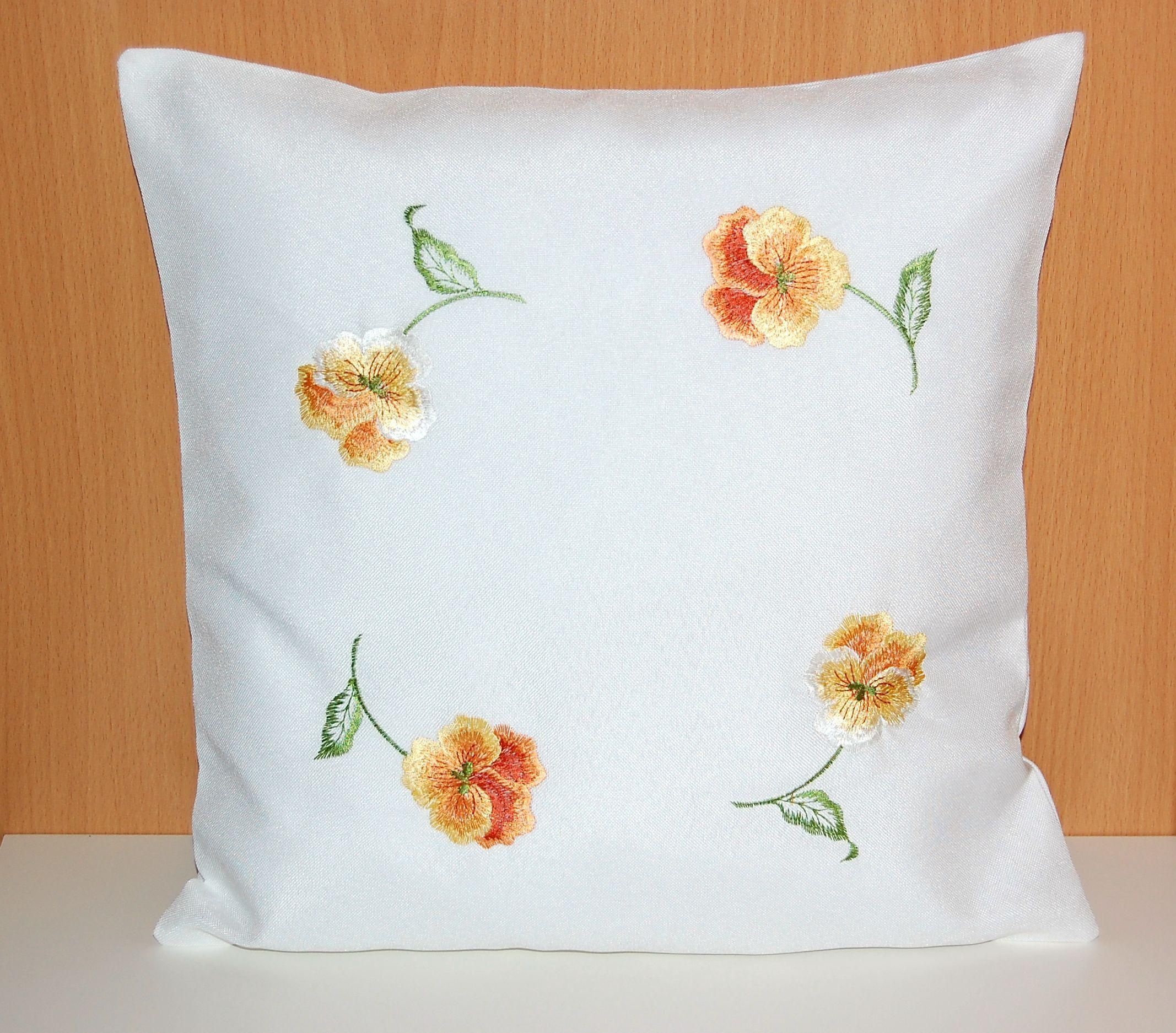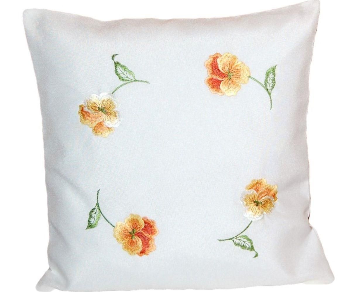 Kissenbezug Dekokissen 40x40 Stiefmütterchen Orange Bestickt Kissenhülle Sofakissen K