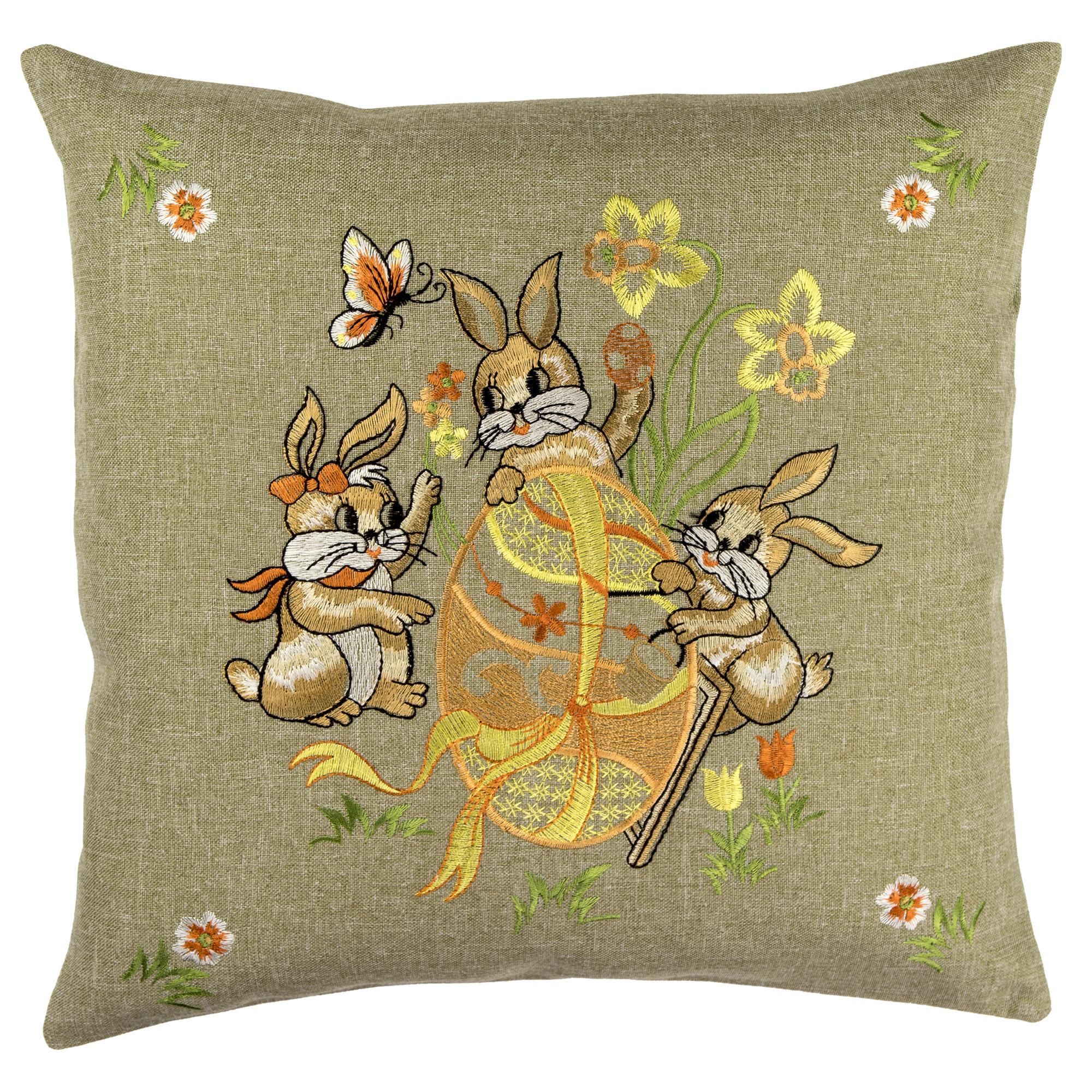 Kissenbezug Ostern 40x40 Dekokissen Kissenhülle Osterkissen Olivgrün Bestickt