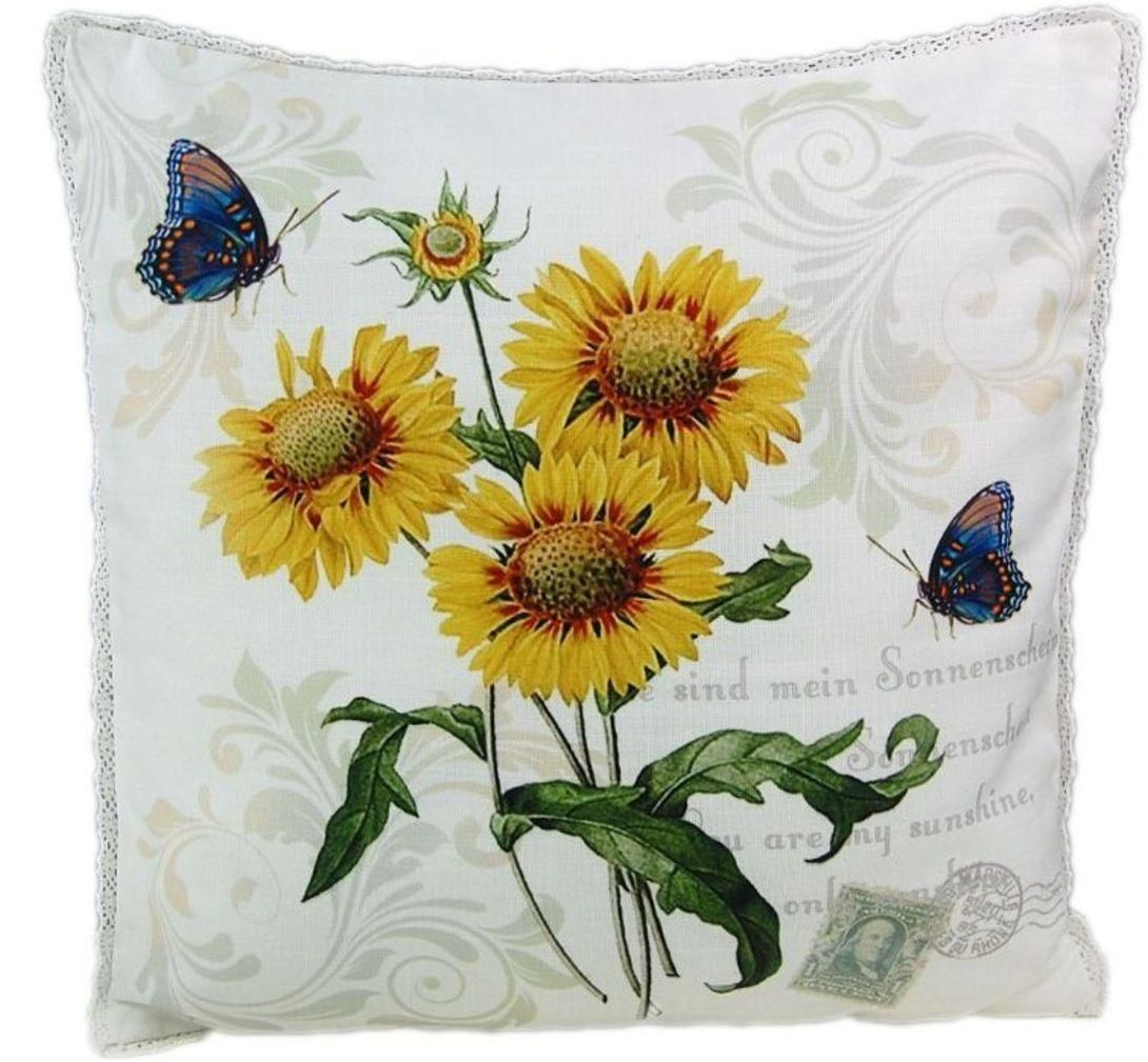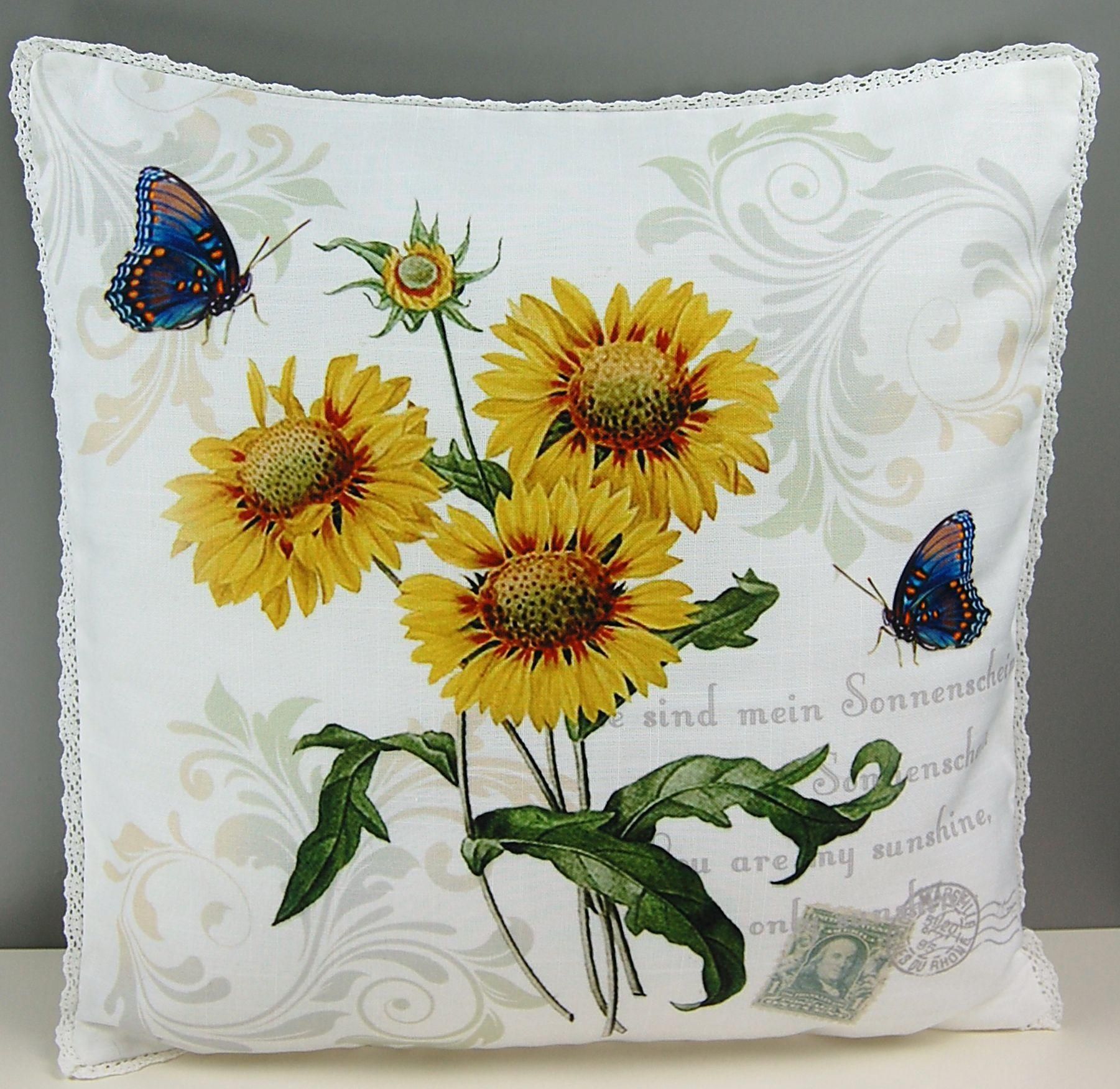 Kissenbezug Weiß 40 x 40 Kissenhülle Landhaus Spitze Kissen Sonnenblume Hossner