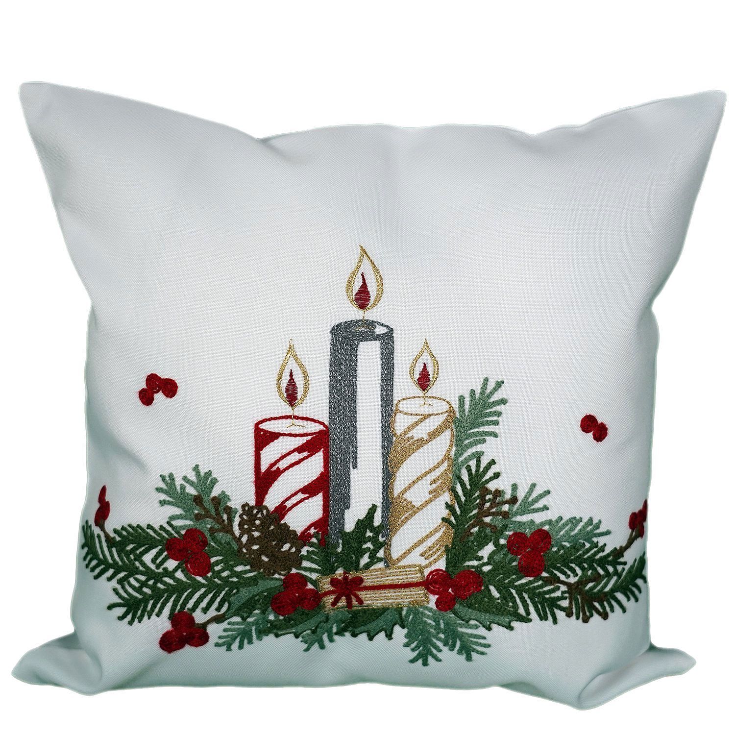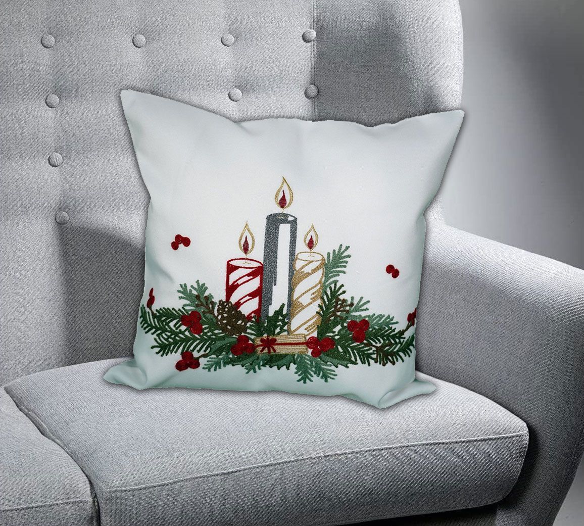 Kissenhülle 40 x 40 cm Stickerei Adventsgesteck Winter Weihnachten Advent
