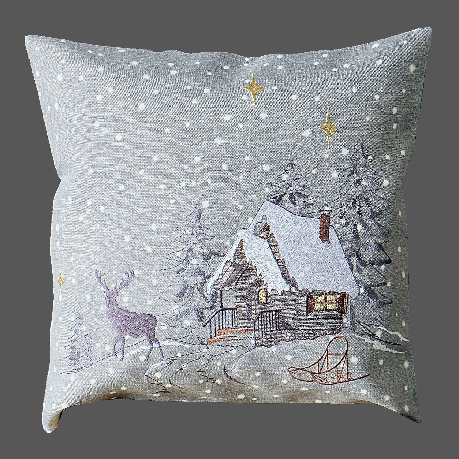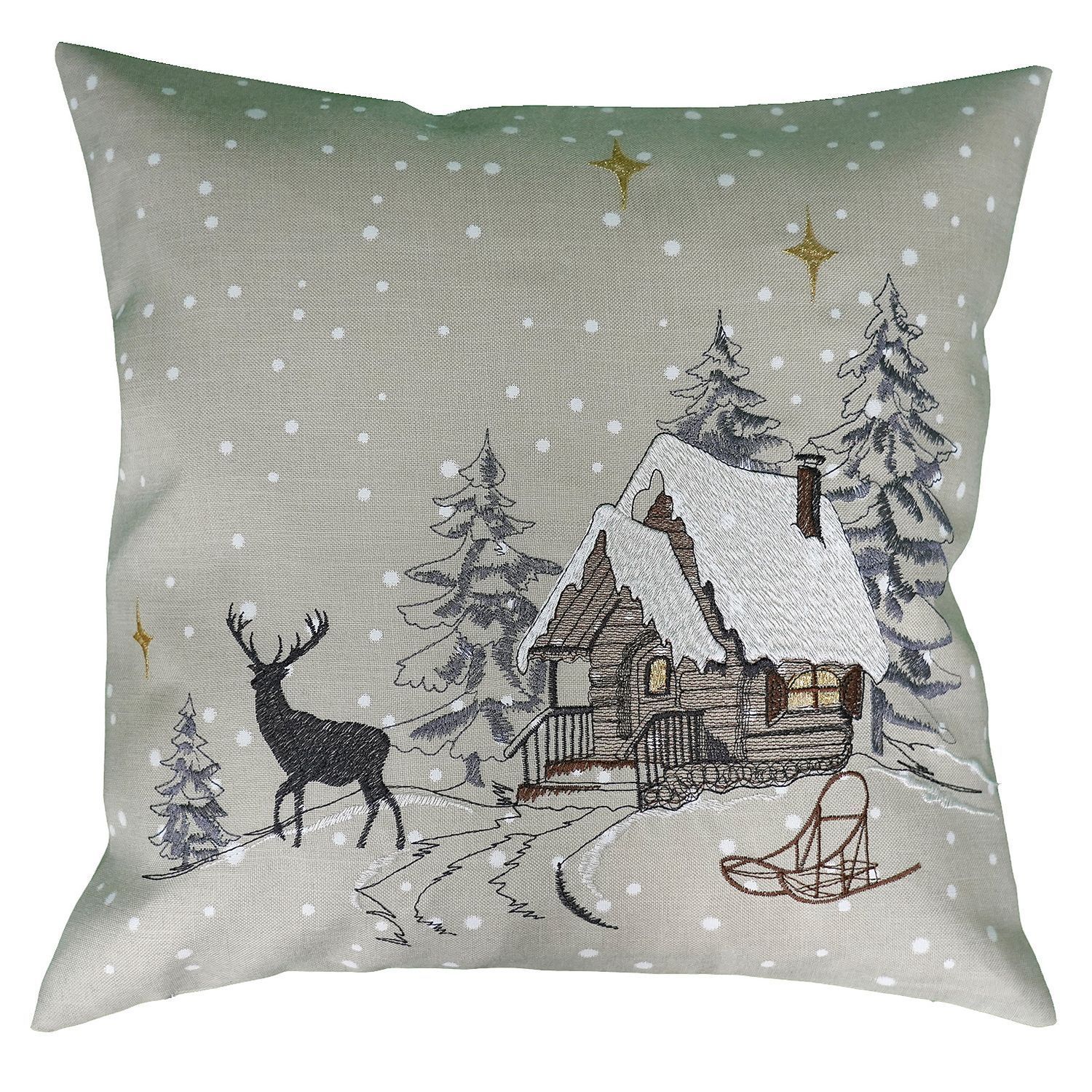 Kissenhülle 40 x 40 cm Stickerei Winterwald