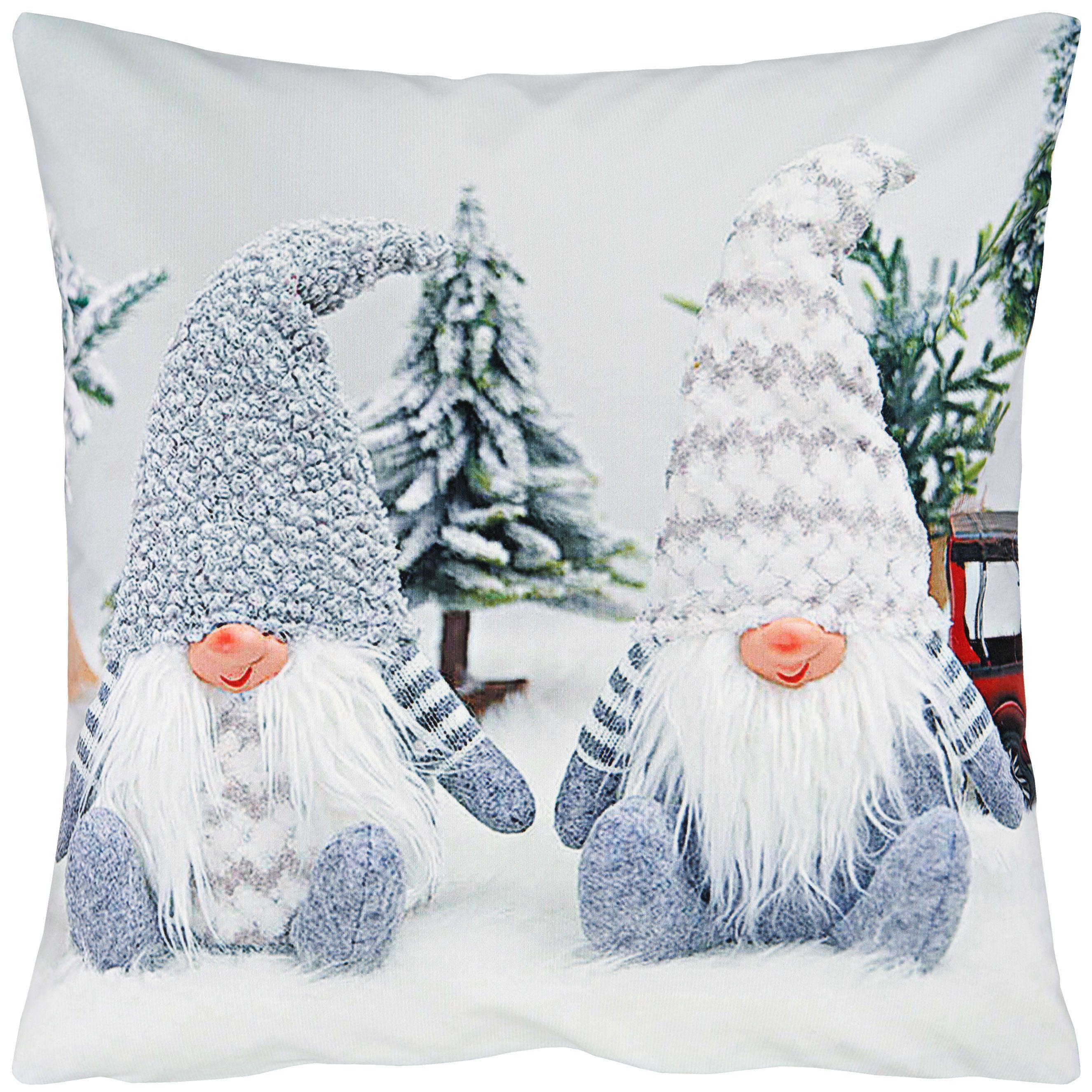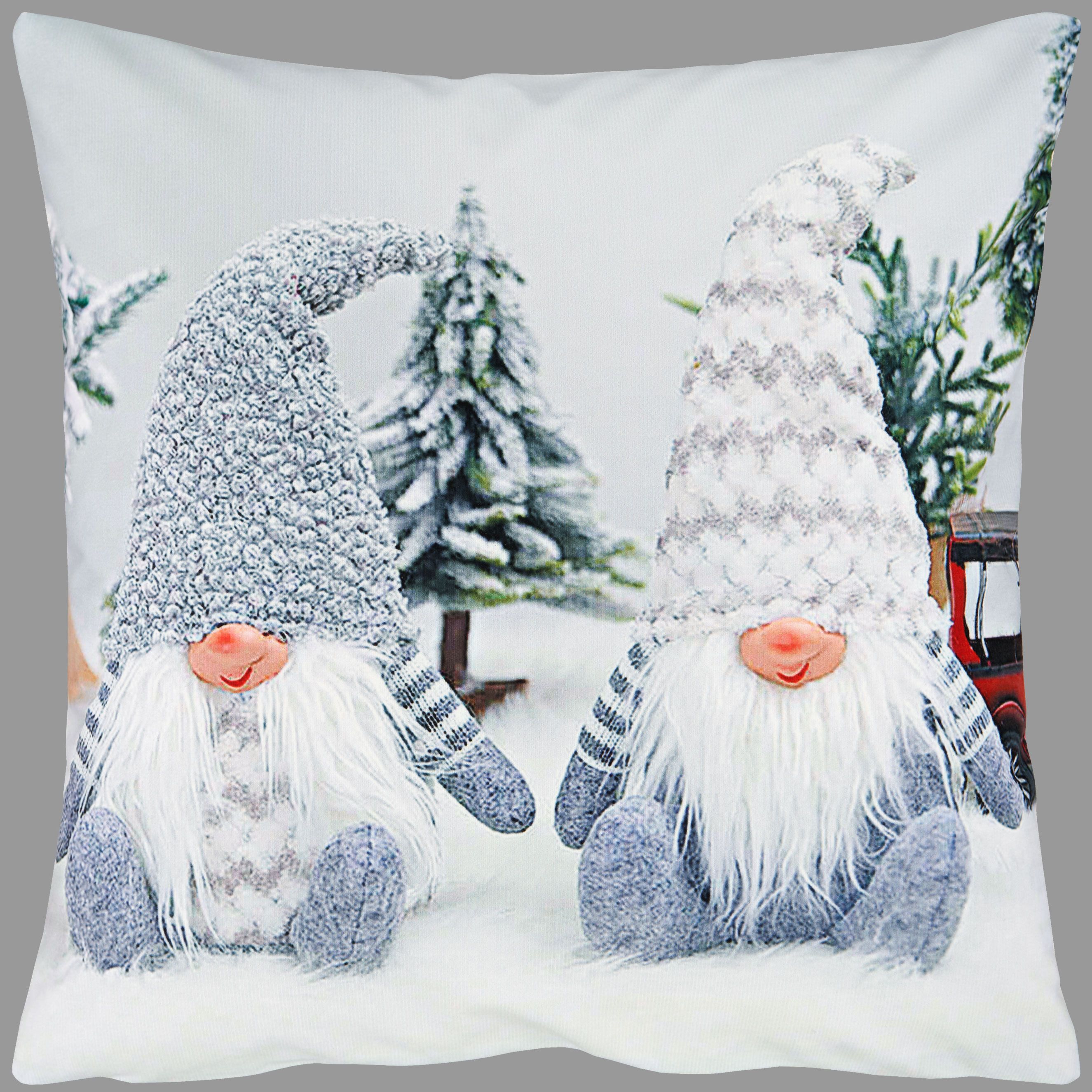 Kissenhülle Kissen Kissenbezug 40x40 Weihnachten Dekokissen Winter Wichtel Grau