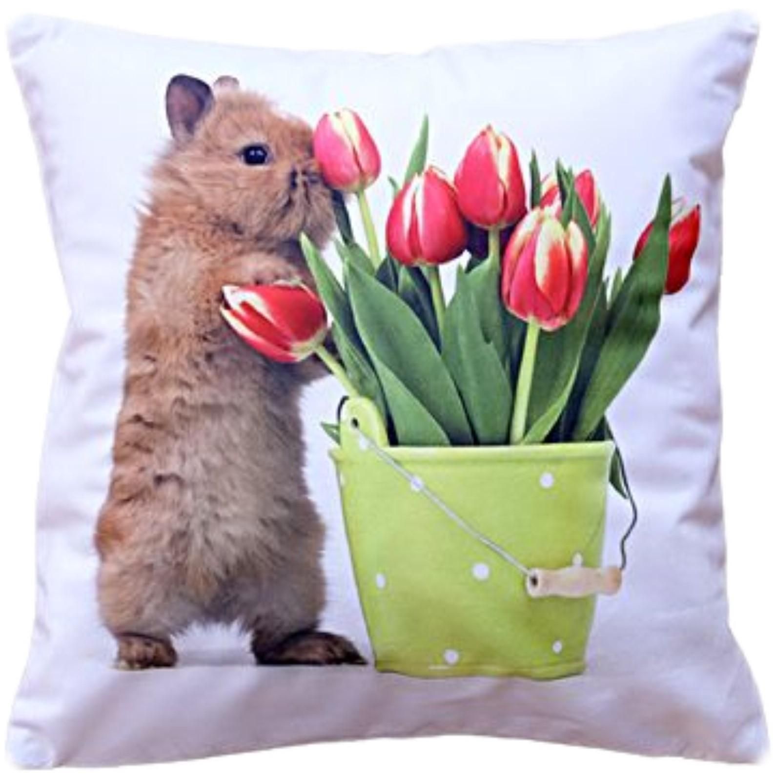 Kissenhülle Ostern 40x40 cm Hase Tulpen Sofakissen Dekokissen Osterkissen
