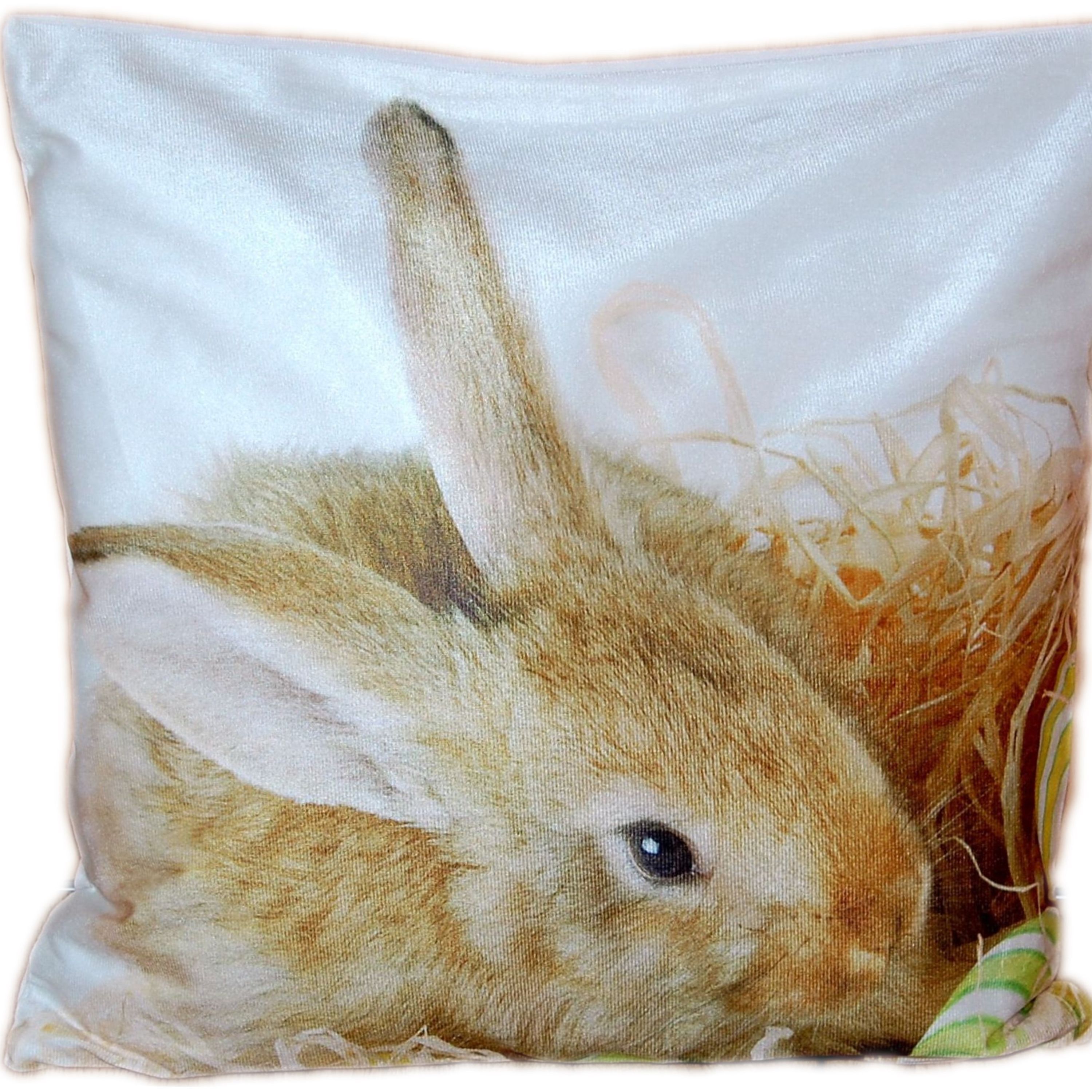 Kissenhülle Ostern 40x40 Hase im Stroh Kissenbezug weiches Osterkissen Dekokissen Dek