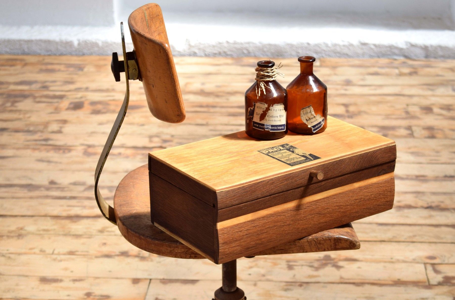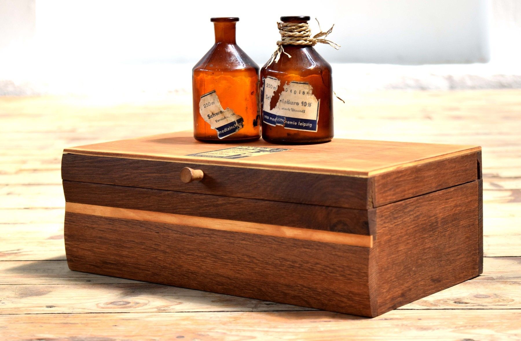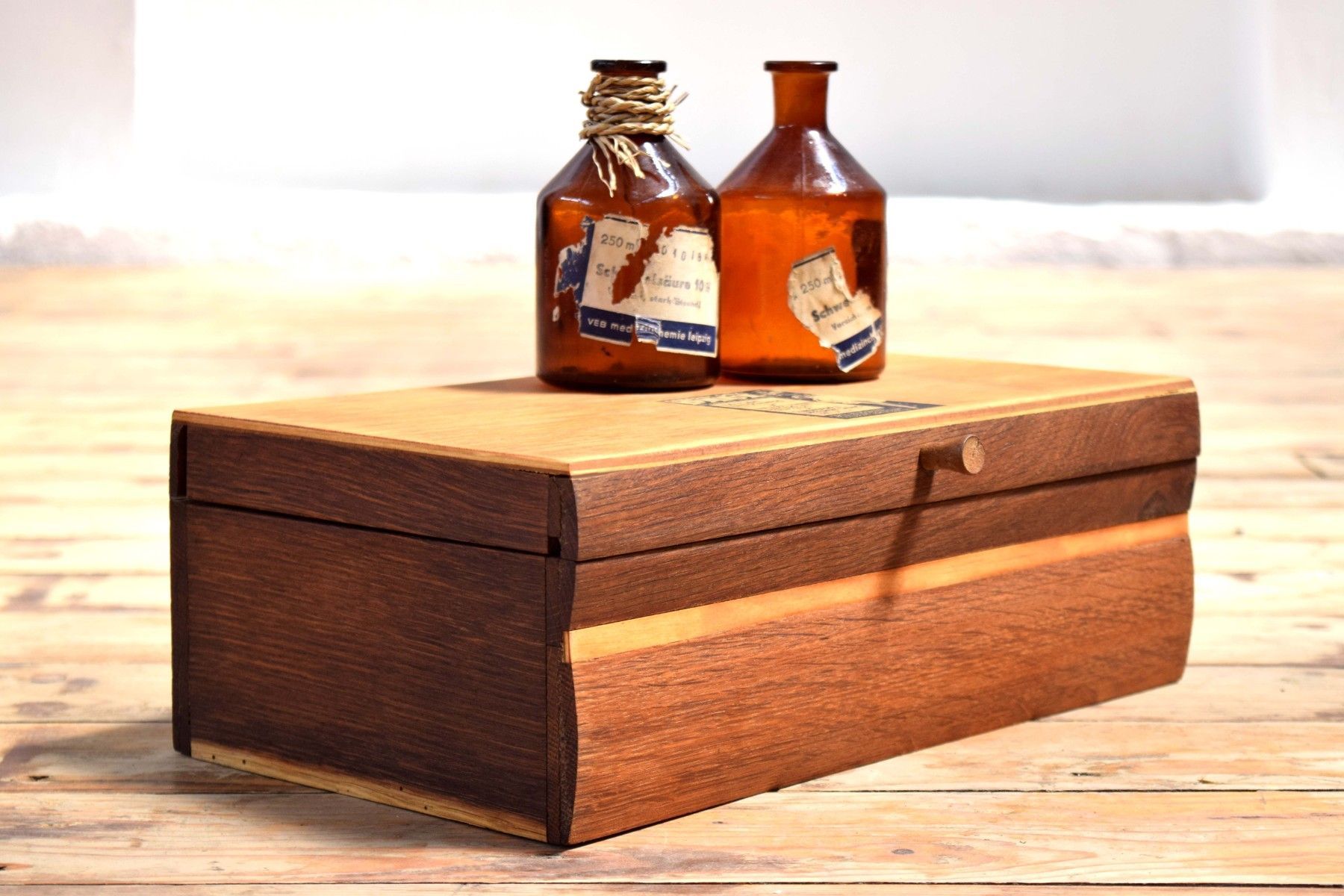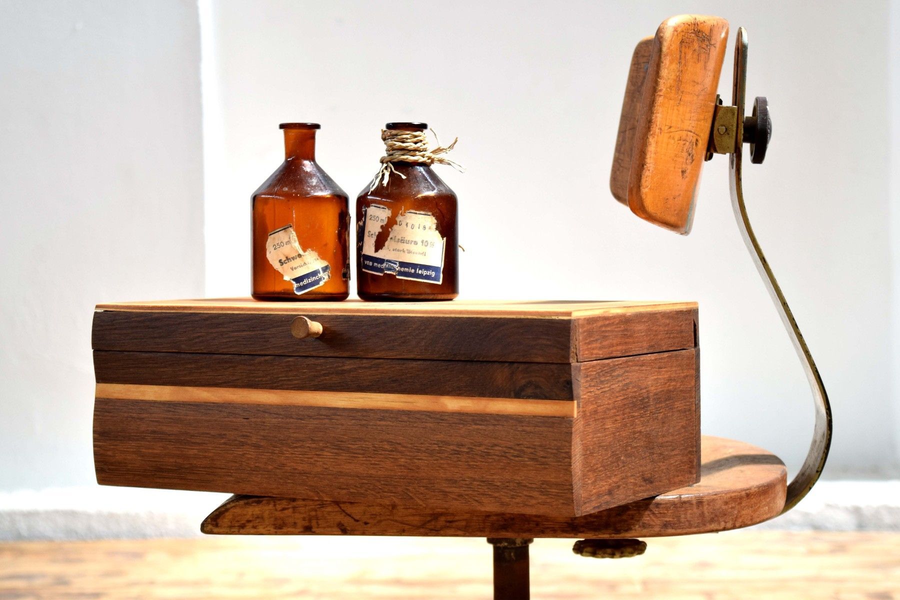 Kiste Deckel 70er Antik Mid Century Alt Eiche massiv Vintage Uhrmacher Apotheker Loft