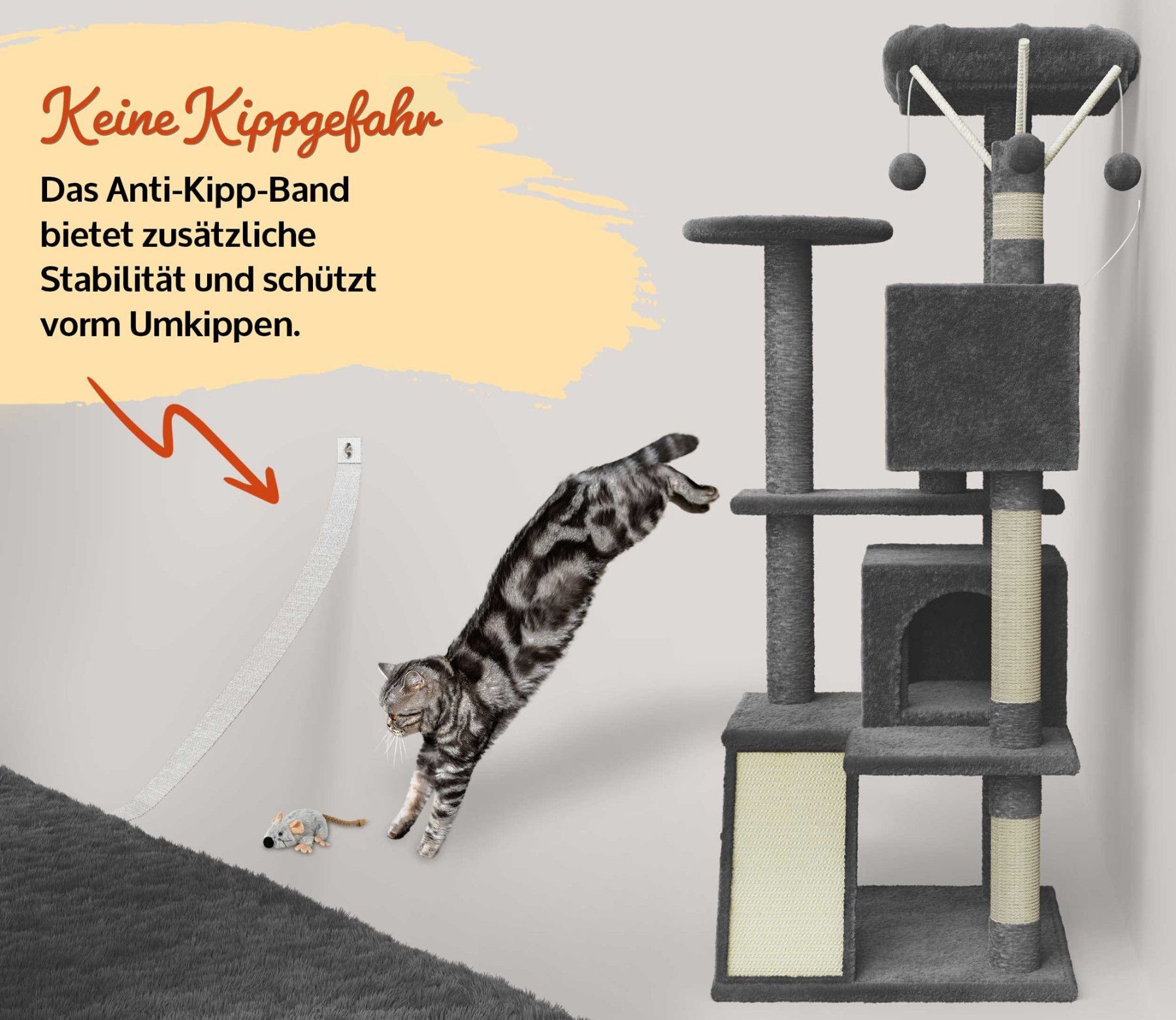 Kitty Dunkel Grau Katzenbaum Kletterbaum Katzenkratzbaum Katzen