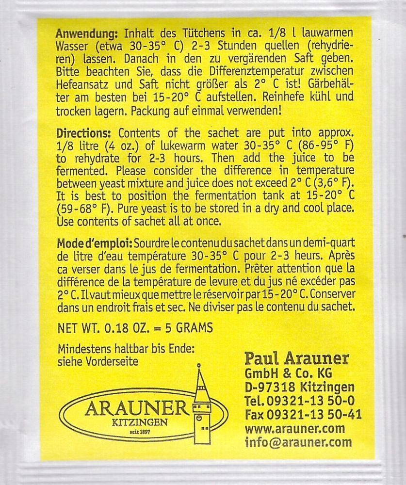 Kitzinger Reinhefe Steinberg Hefe ausreichend für 10-50 L - 5 g