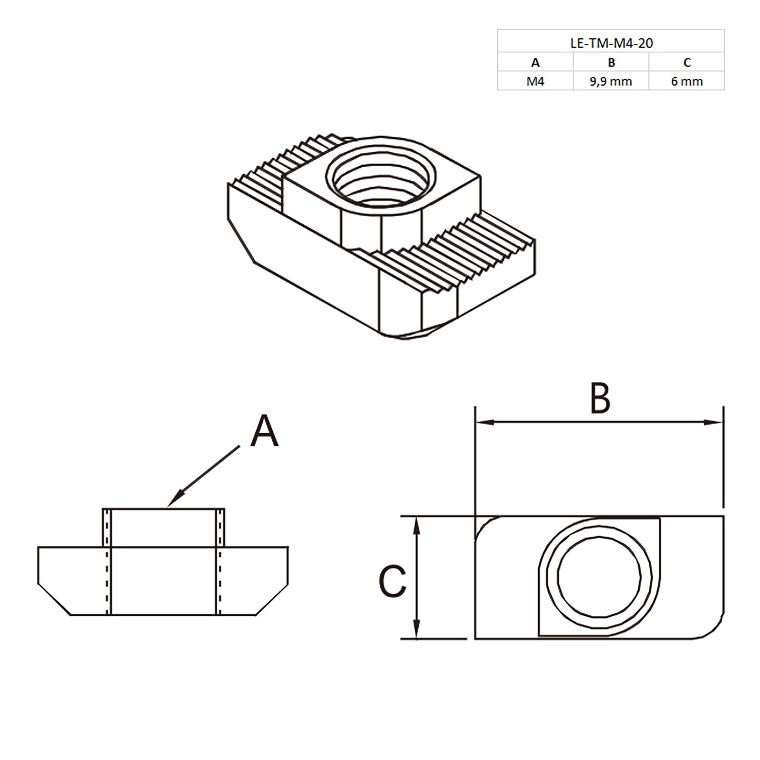 KLAK 20 - Edelstahl Hammermutter Nutenstein M4 Nut 6 für Aluprofil 20-er