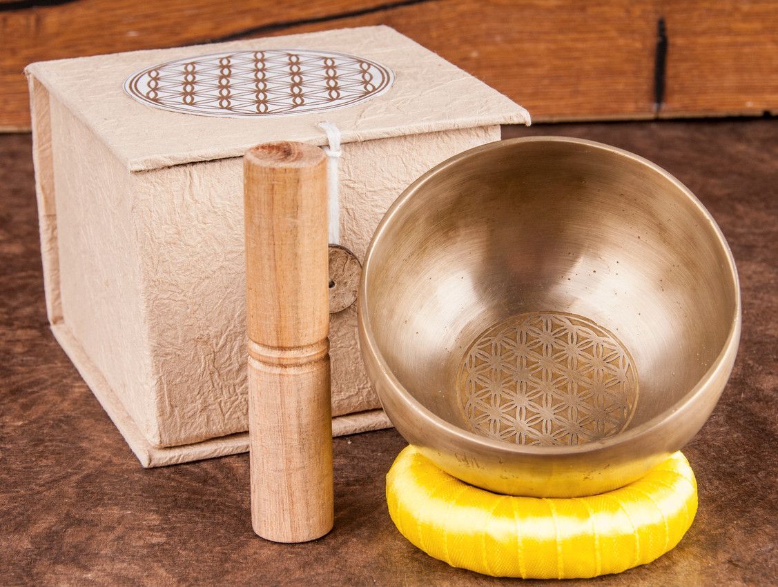 Klangschale Blume des Lebens, groß in Geschenkbox, KH-16-12