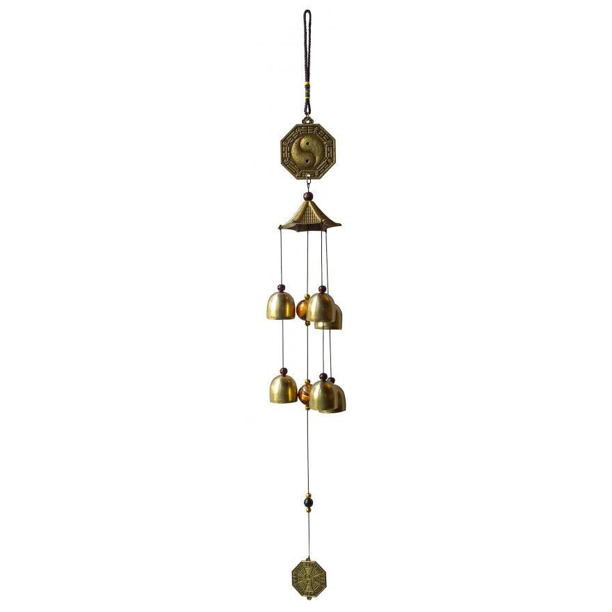 Klangspiel "Pakua/Kuan Yin mit Pagode" aus Metall mit Kunststoff, 55 cm lang.
