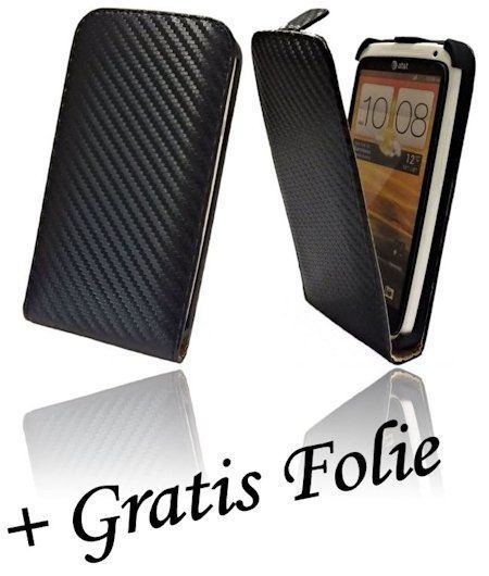Klapp Tasche aufklappbare Hüle für HTC ONE X + Folie Schwarz -1011