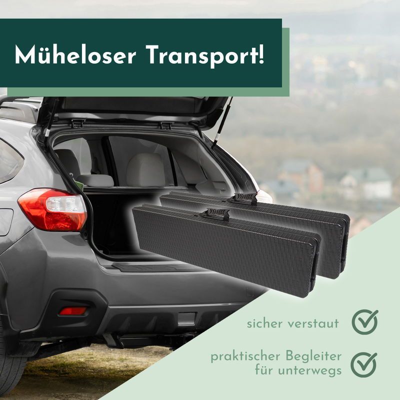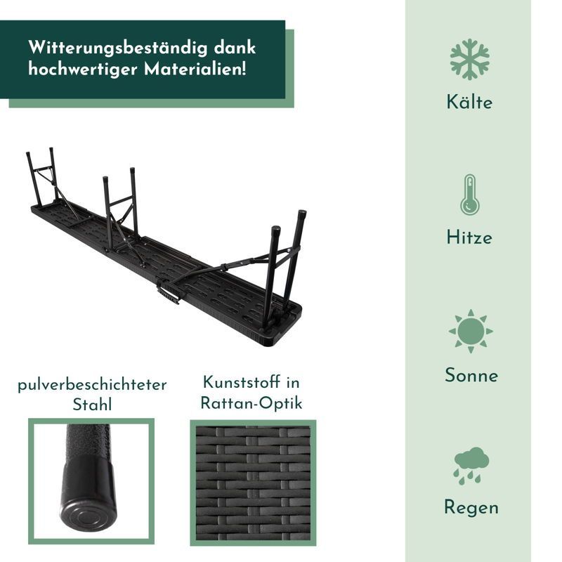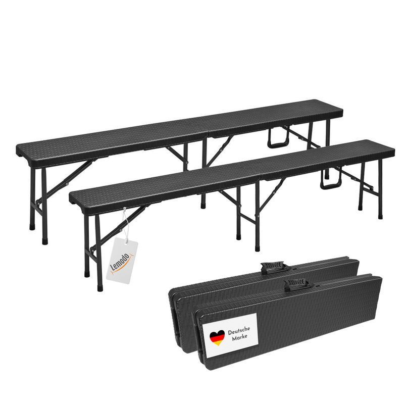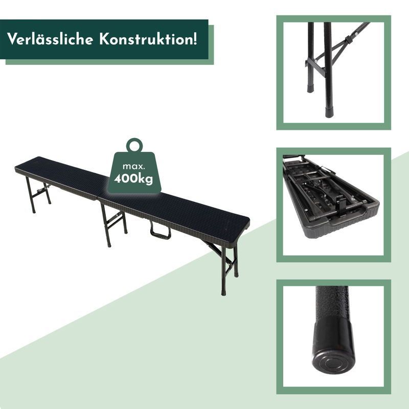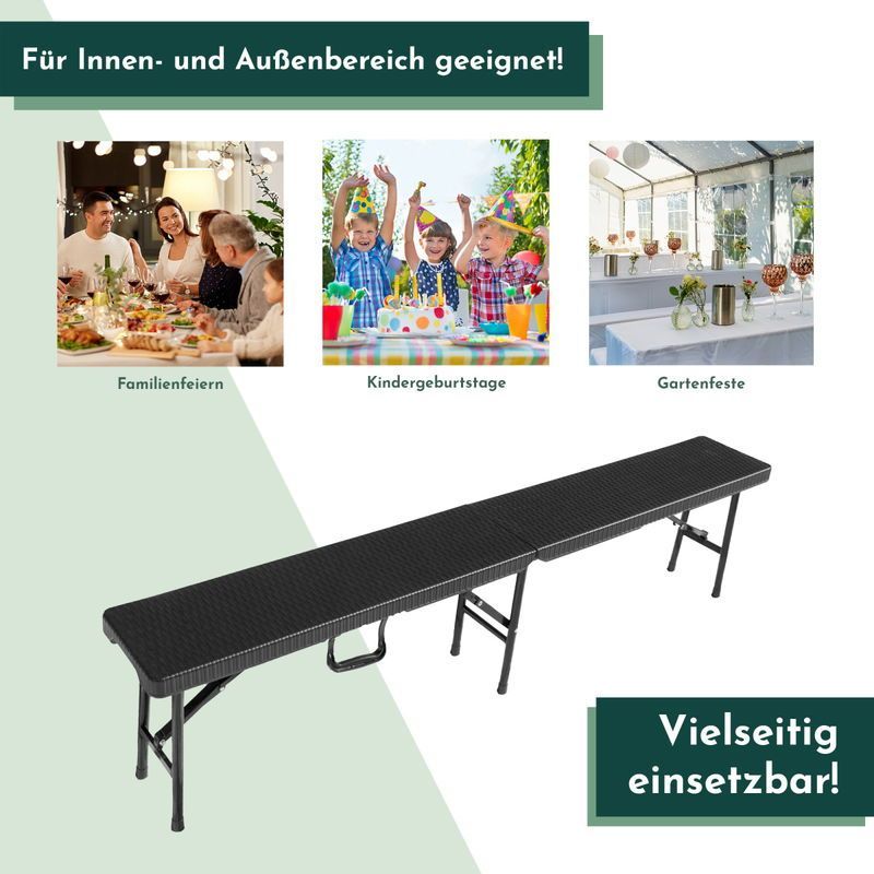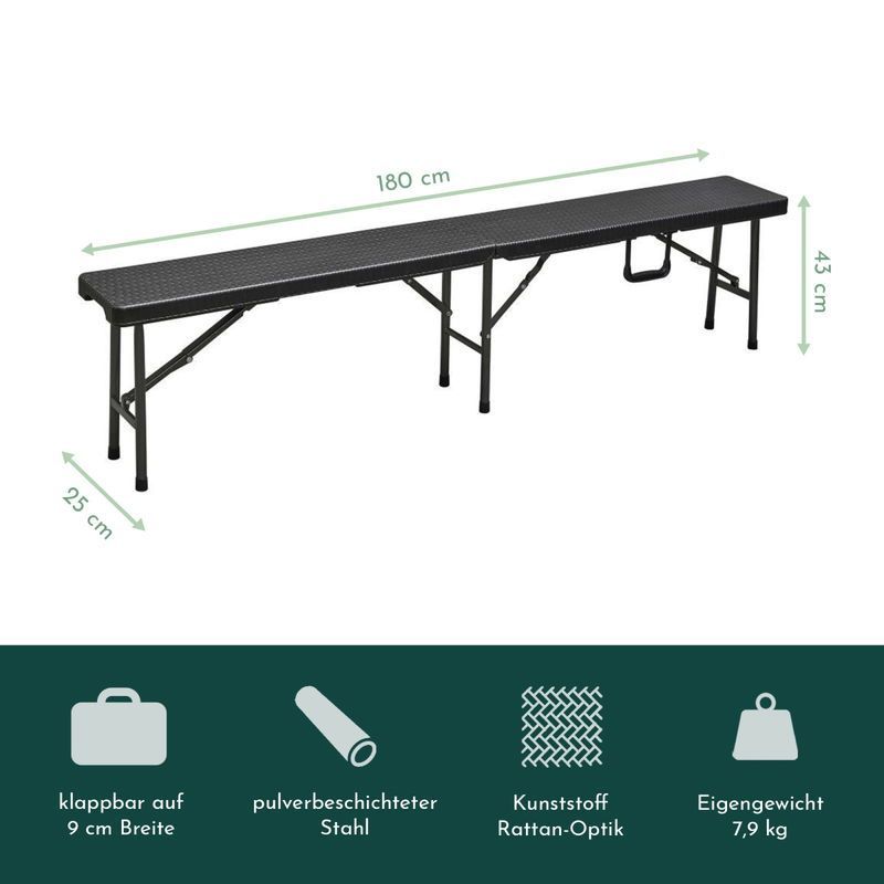 Klappbank, 2-er Set, Rattan-Optik, 180 cm, Bierzeltbank schwarz