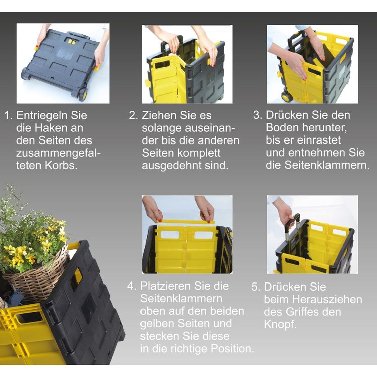 Klappbare Rollbox Einkaufskorb Kofferraumbox Aufbewahrungsbox Rollenbox Trolley