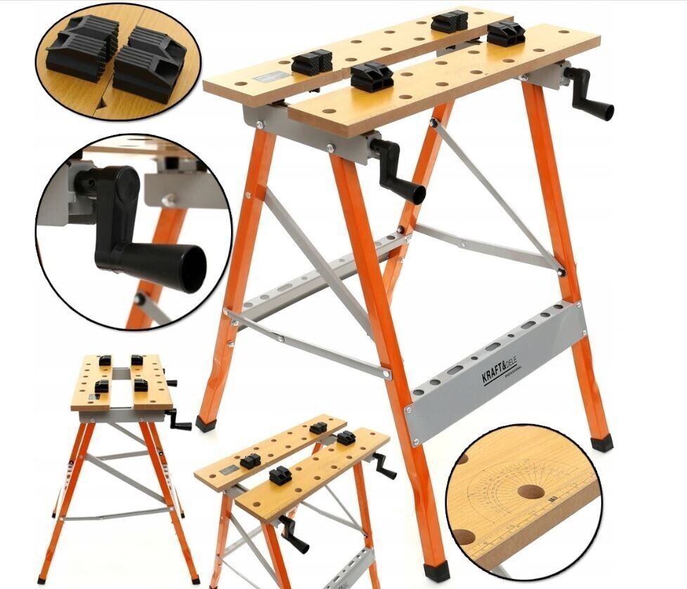 QLS Klappbare Werkbank Tragkraft 100 kg Maß- und Winkelskala 60x63x78 cm 10939