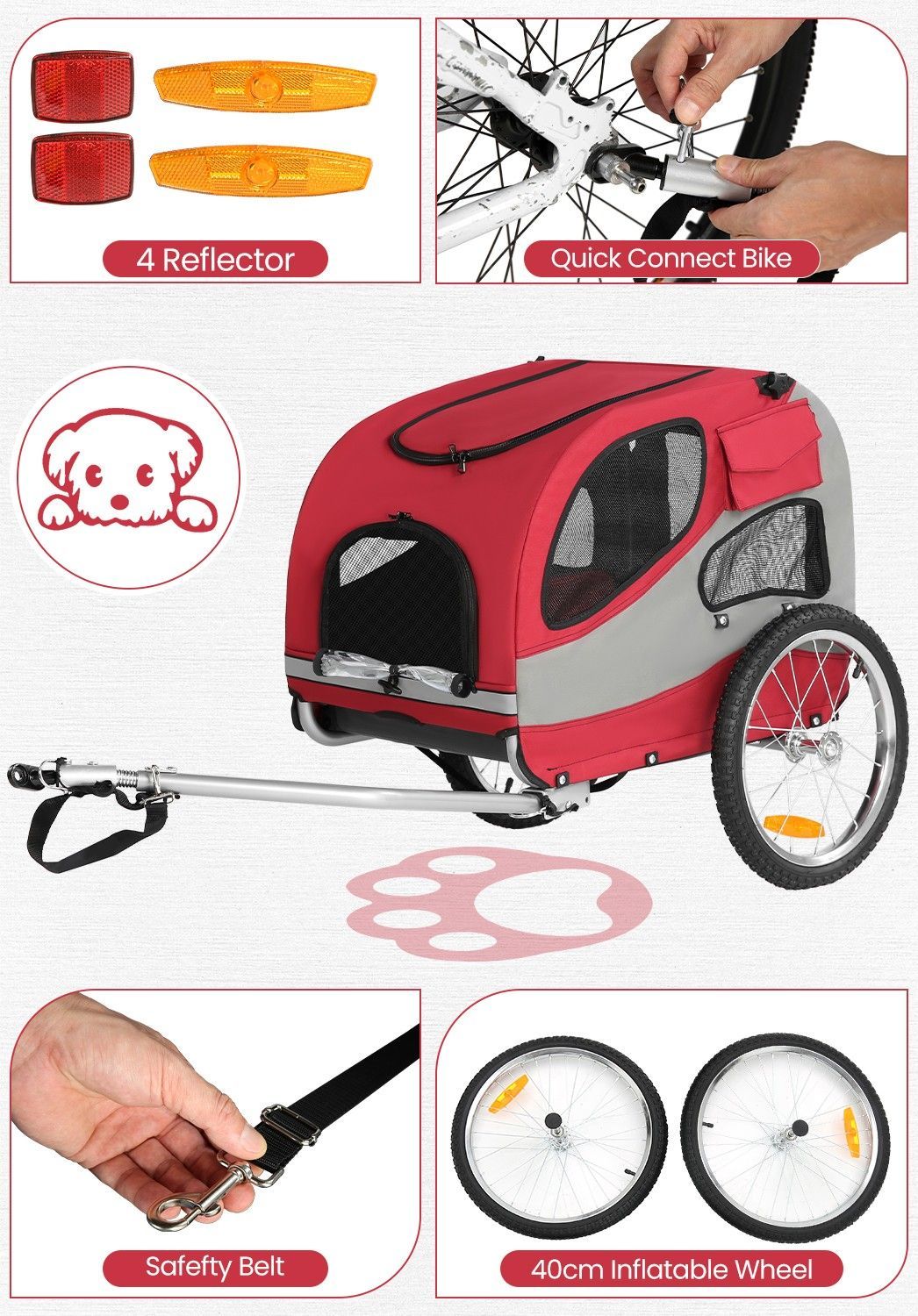 Klappbarer Hunde-Fahrradanhänger M 3 praktischen Taschen, Polsterung bis 30 kg
