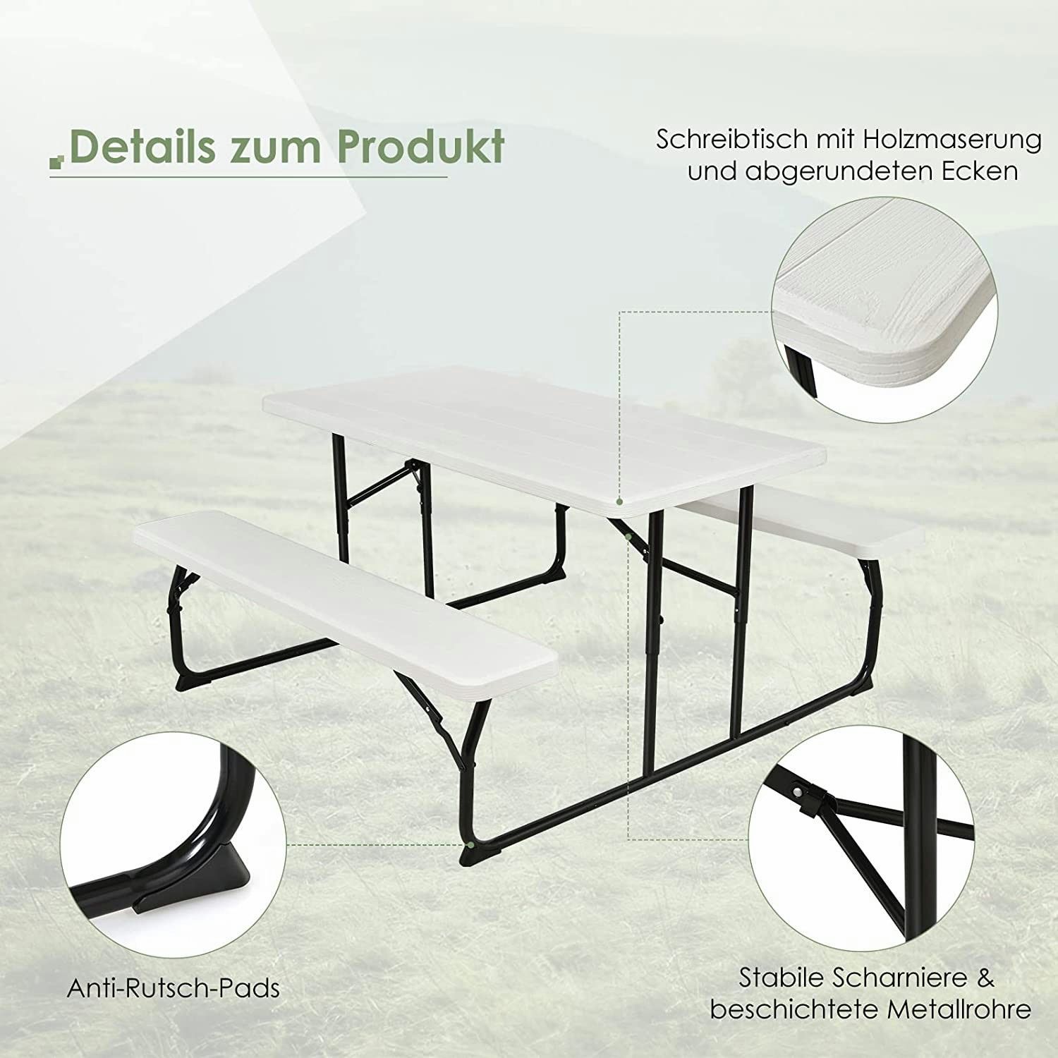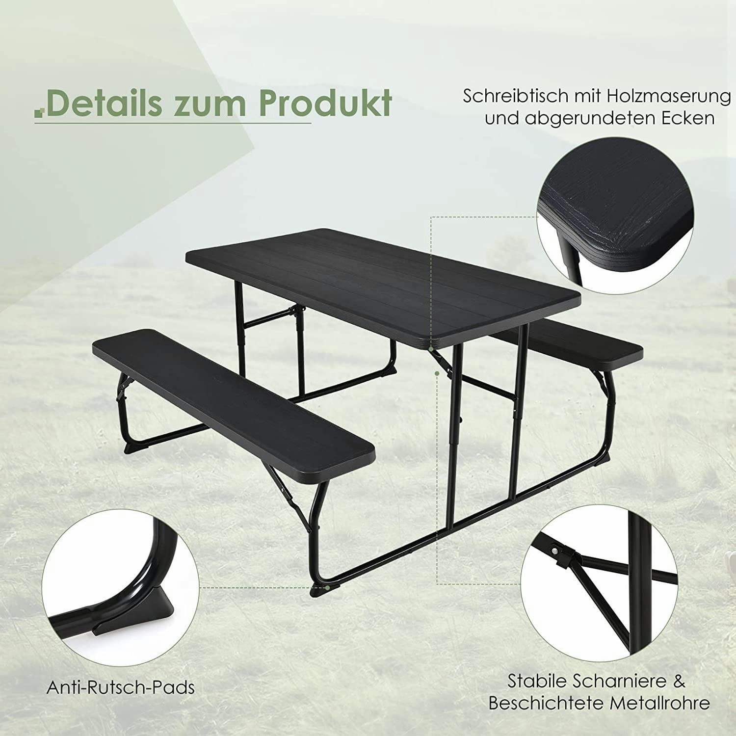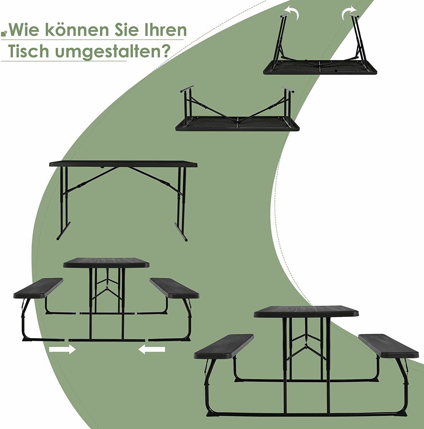 Klappbarer Picknicktisch mit Bänken, 136 cm Campingtisch-Set für draußen, für Garten