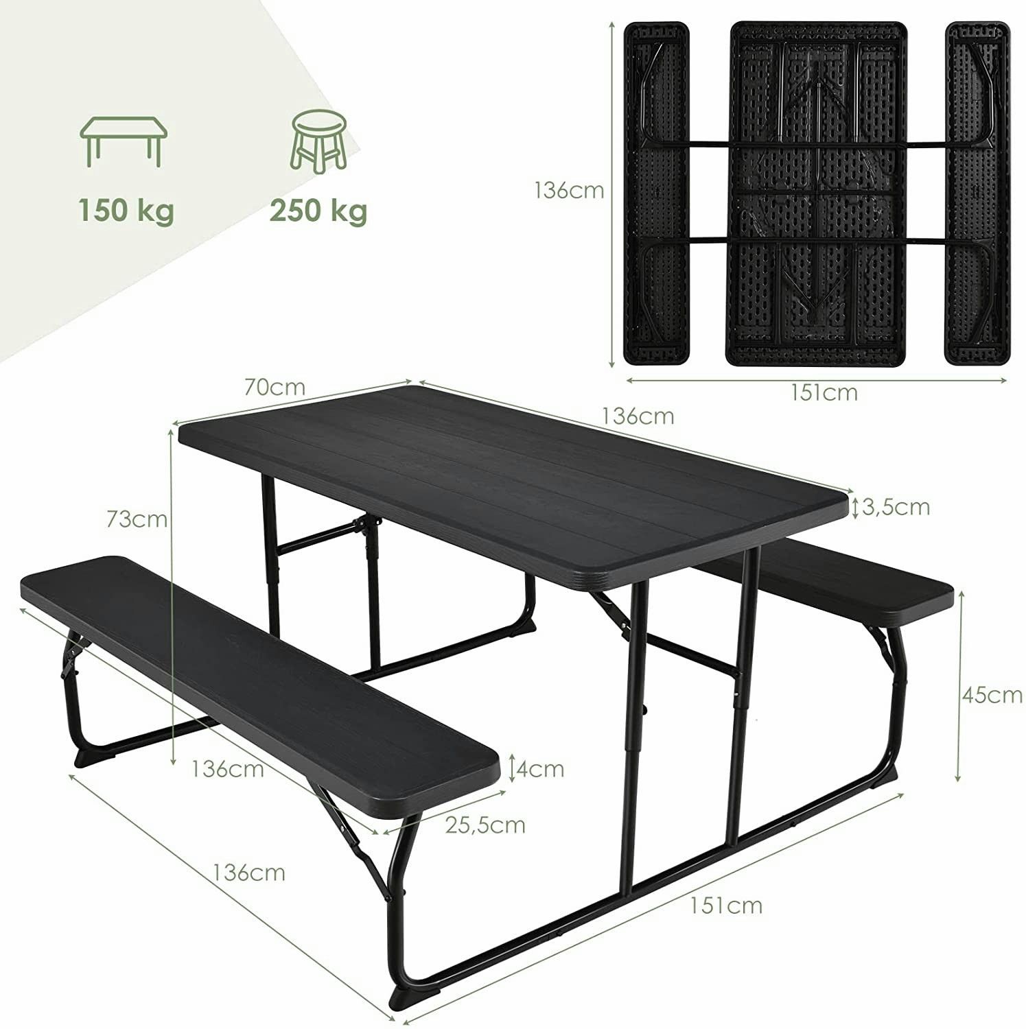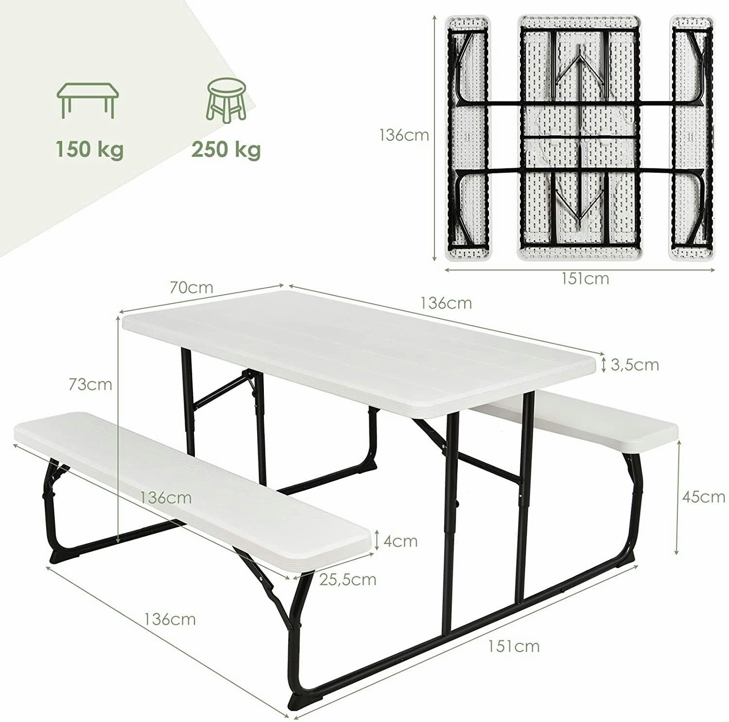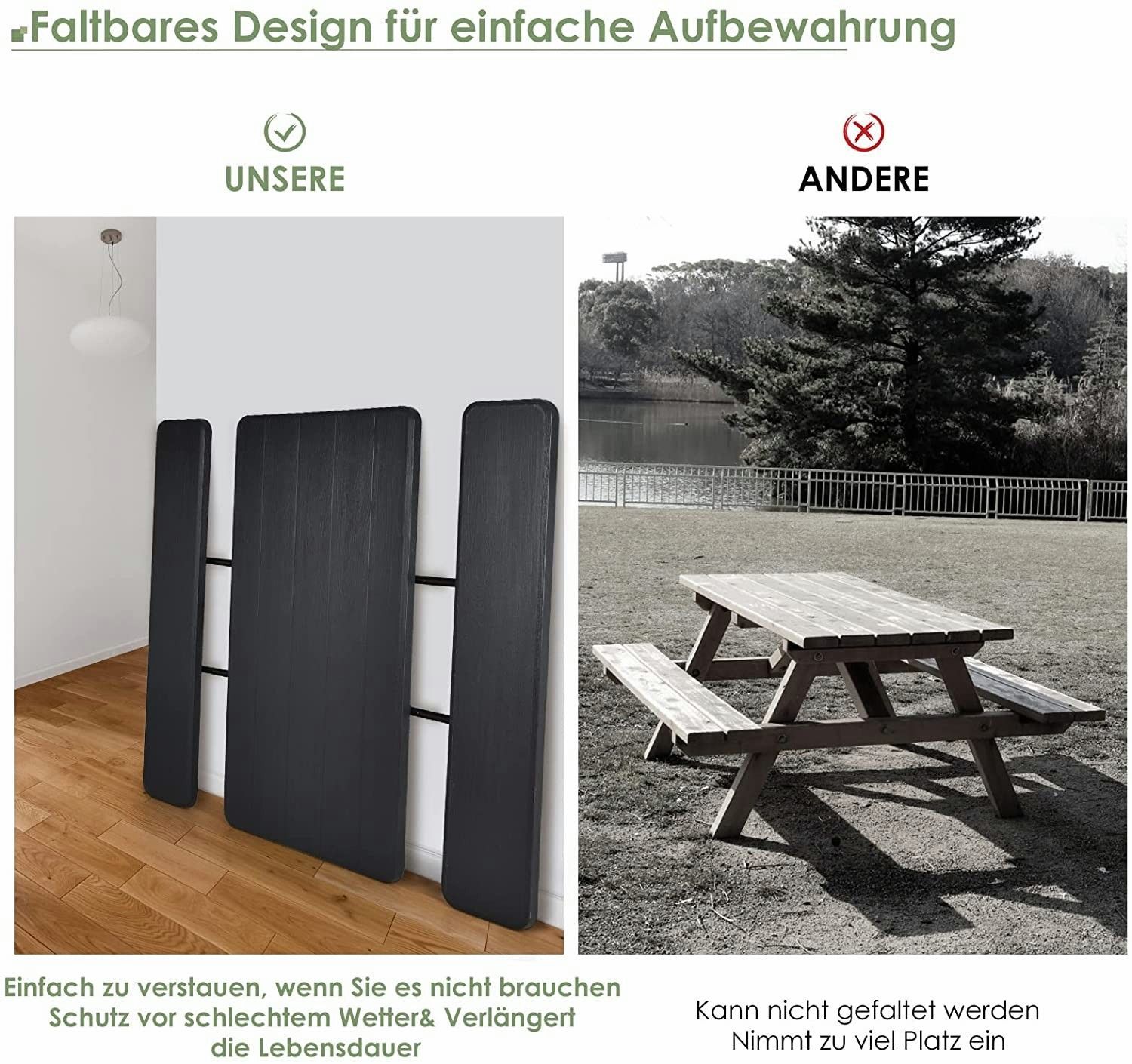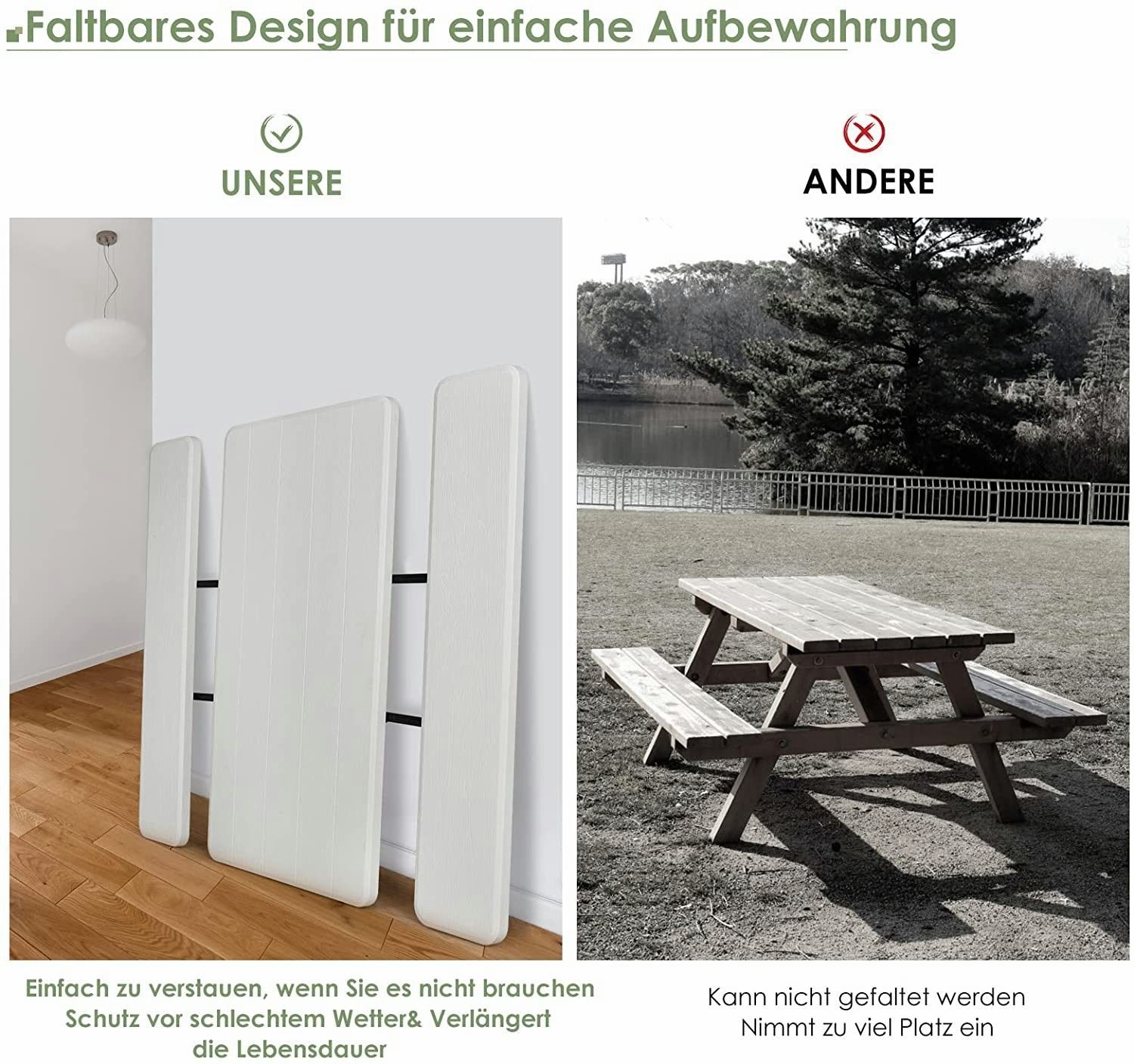 Klappbarer Picknicktisch mit Bänken, 136 cm Campingtisch-Set für draußen, für Garten