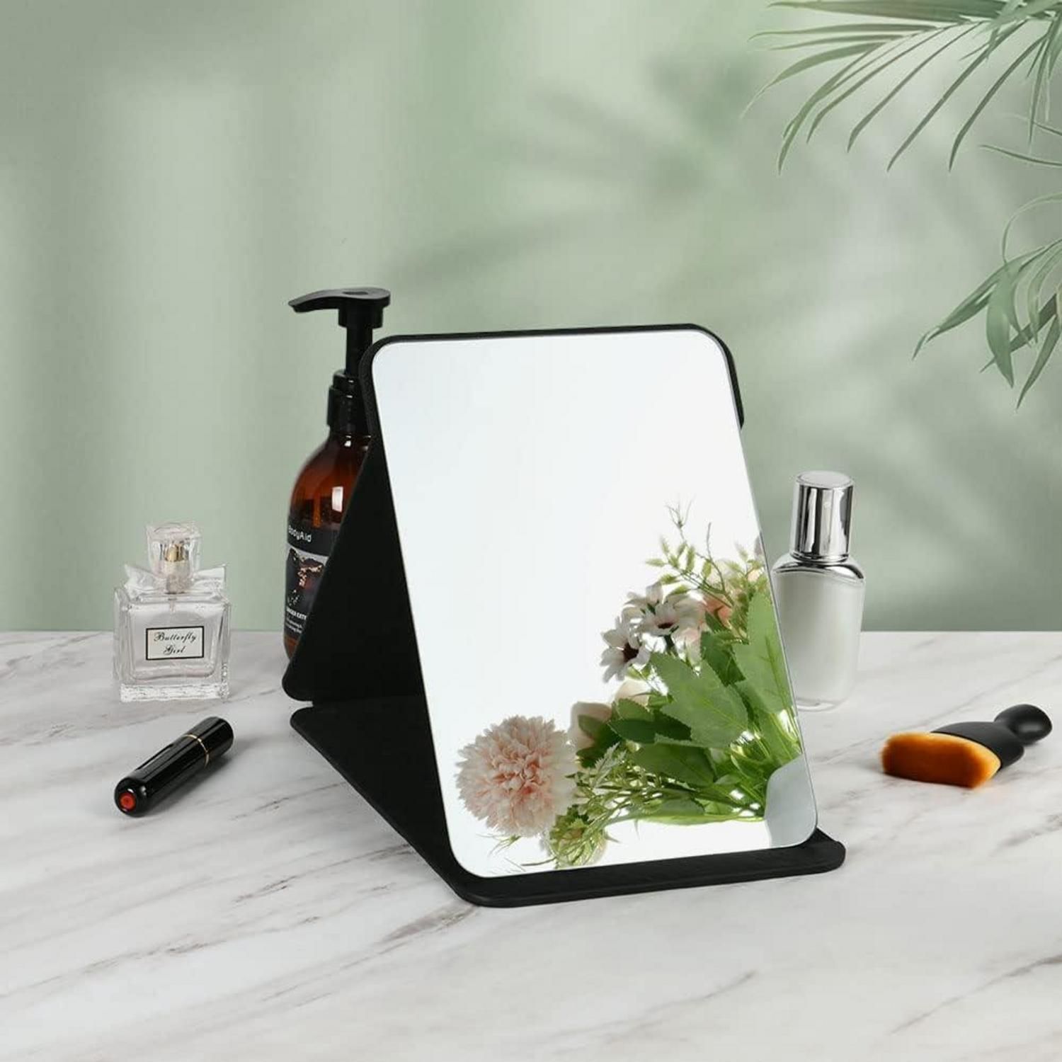 Klappbarer Reisespiegel für Tischplatte Handheld Groß 20.5x15cm Schwarz