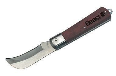 Klappbares Aufreißmesser zum Flicken von Elektrokabeln, für andere Montagearbeiten und mehr. Klinge aus Edelstahl. Griff mit Stahlrahmen und Verkleidung aus exotischem Hartholz. Klingenlänge: 75 mm Messerlänge: 195 mm