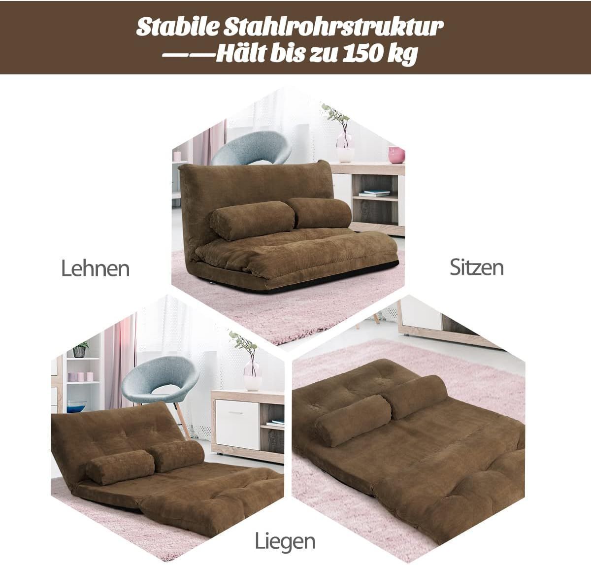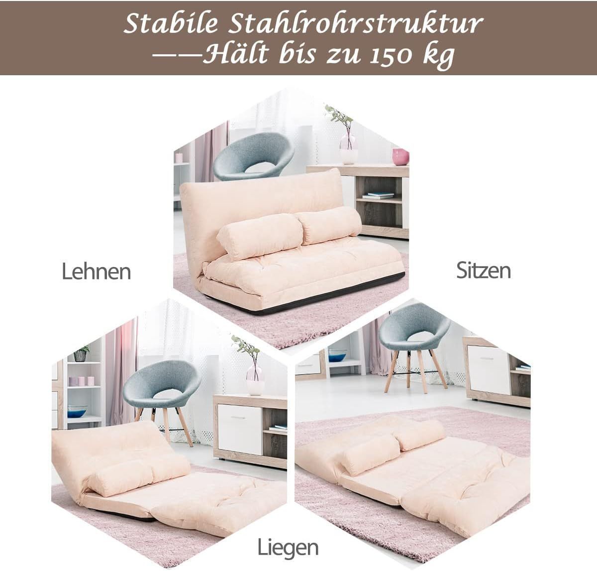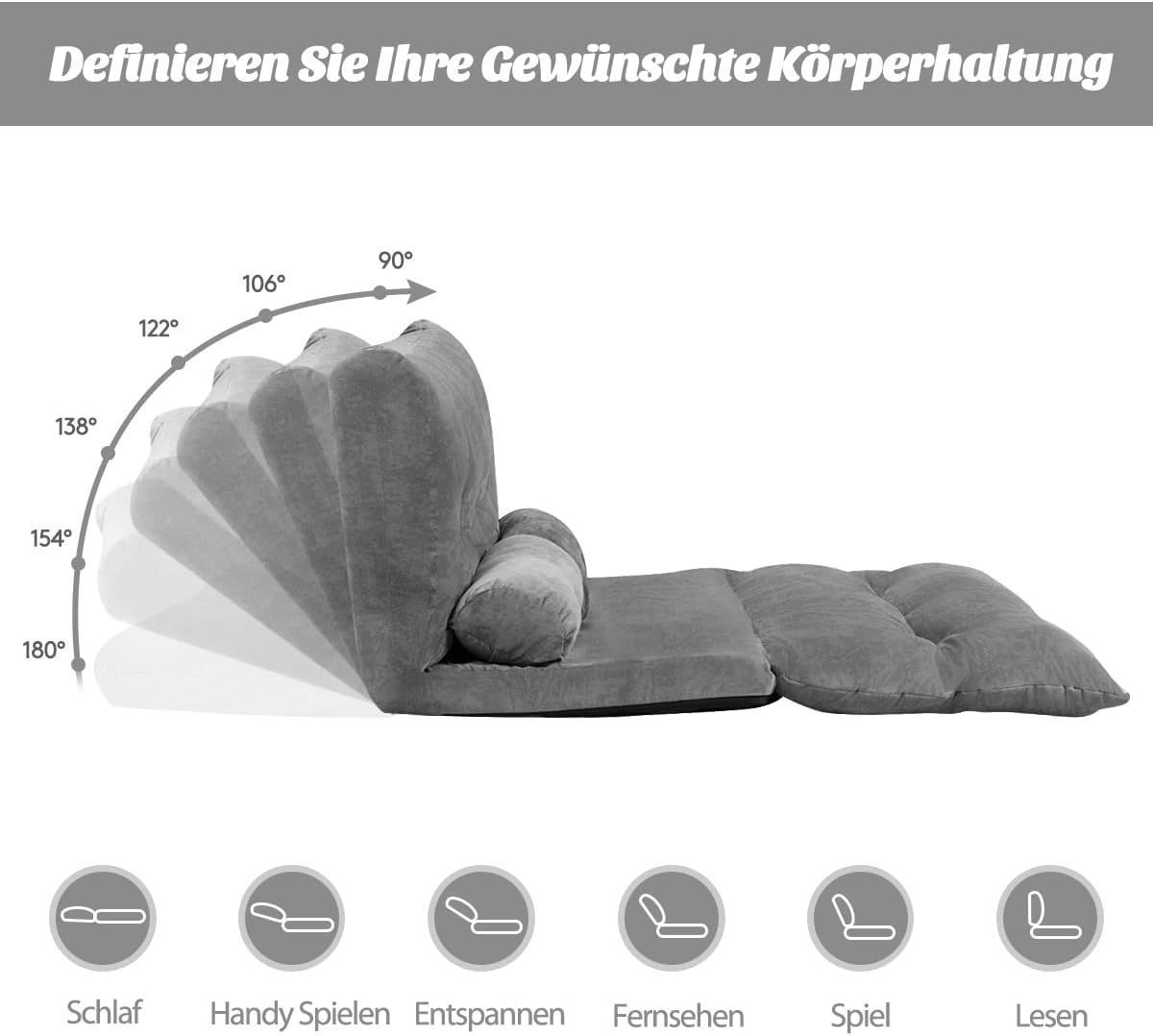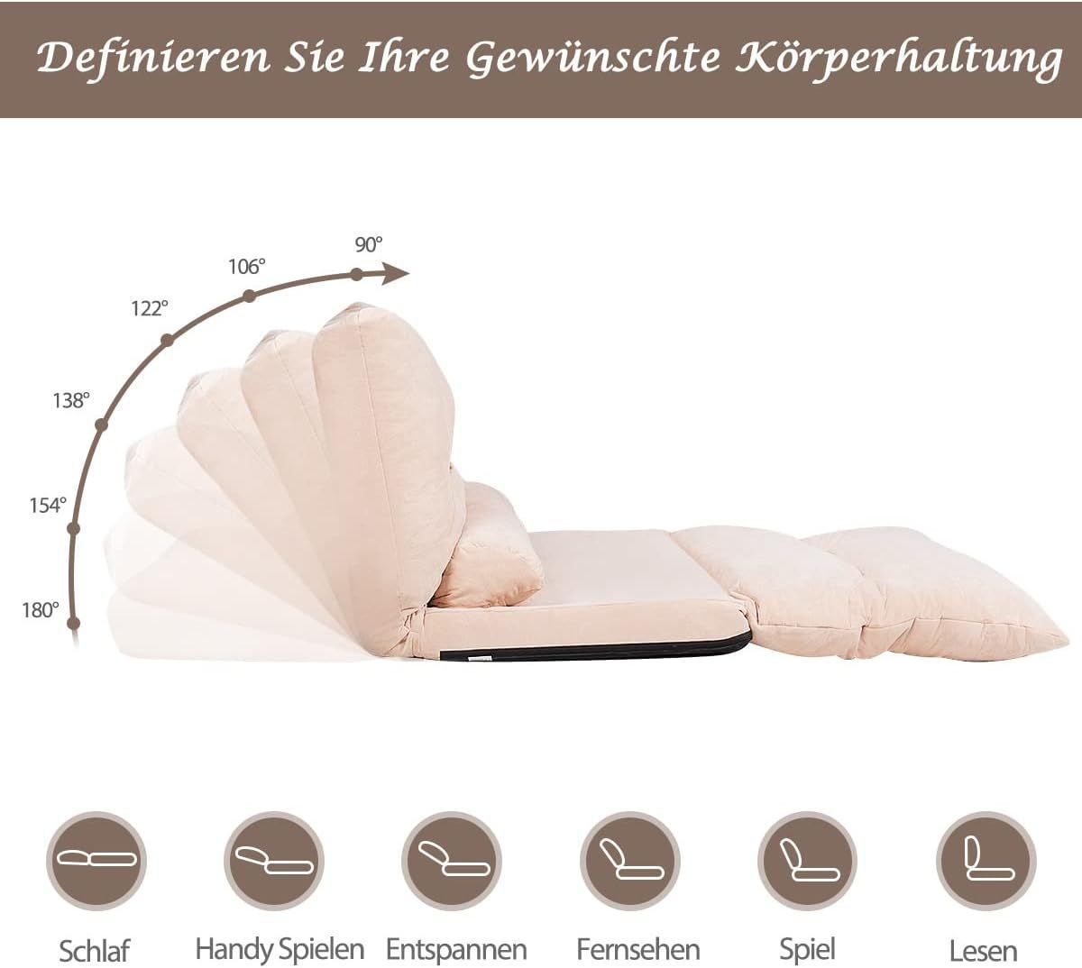 Klappbares Bodensofa, 3 in 1 Schlafsofa mit Schlaffunktion & Verstellbarer R¨¹ckenleh