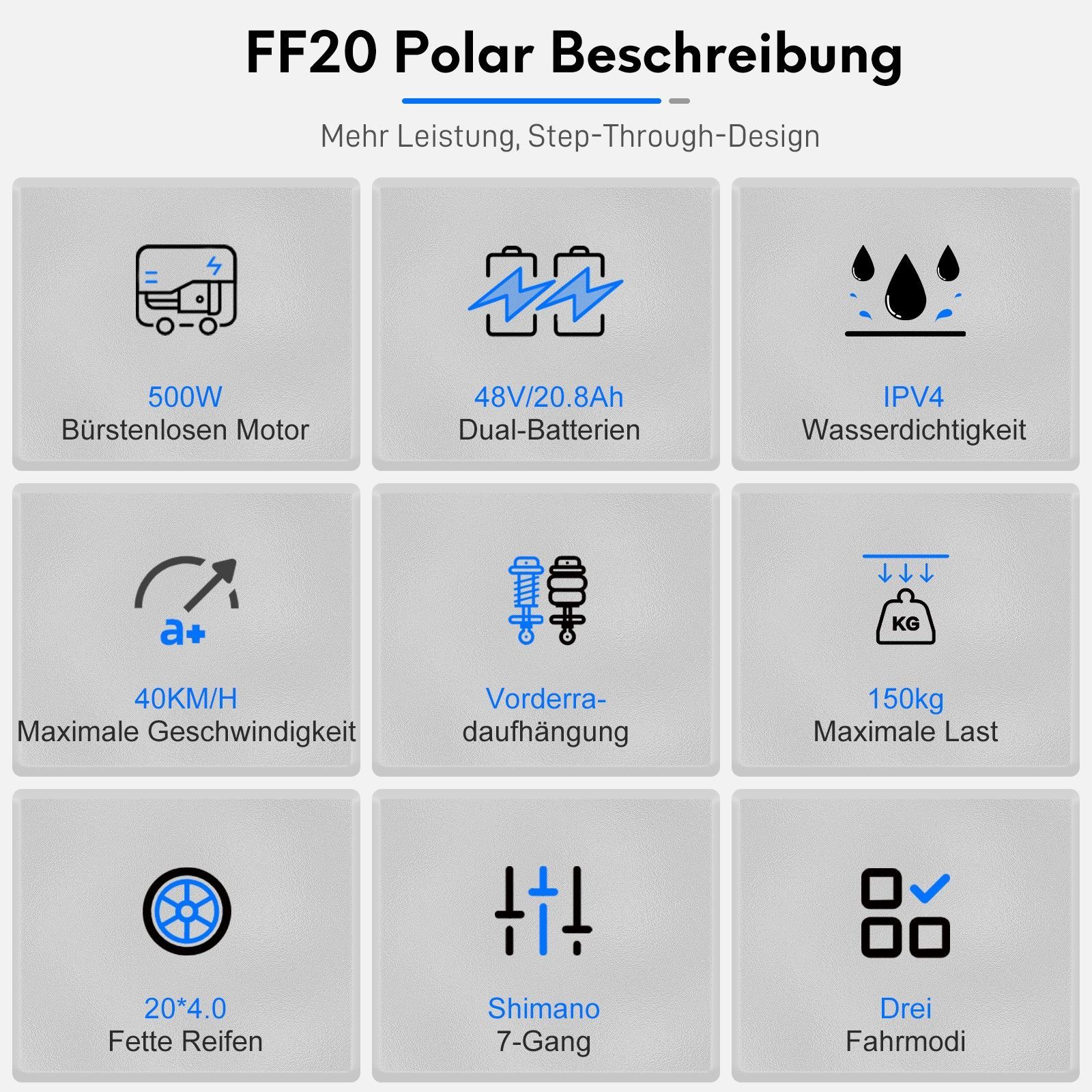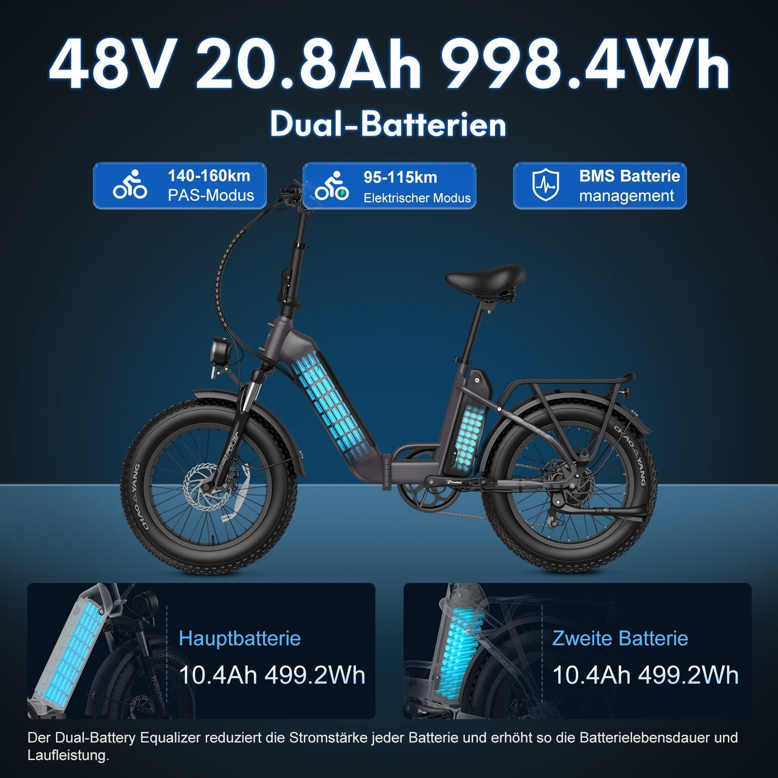 Klappbares E-Fatbike All Terrain mit Dual Akku 48V 10.4Ah Fafrees FF20 E-Cargo Bike