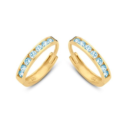Klappcreolen 14 Zirkonia aqua 11/1,8 mm Gold 585/000
