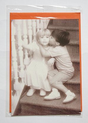 Klappkarte Motiv Kuss schwarzweiss Foto Kinder Treppe vintage mit rotem Umschlag