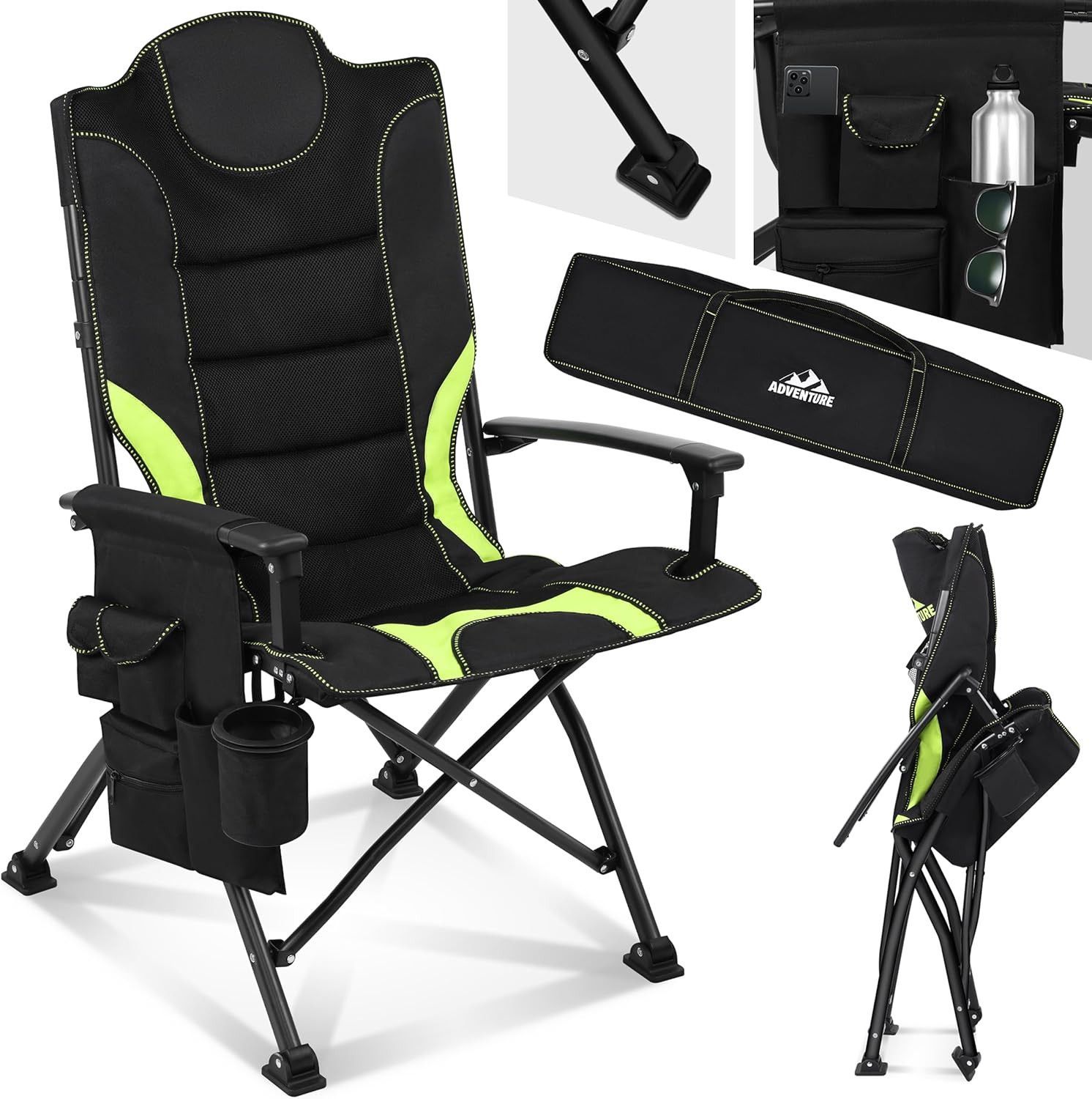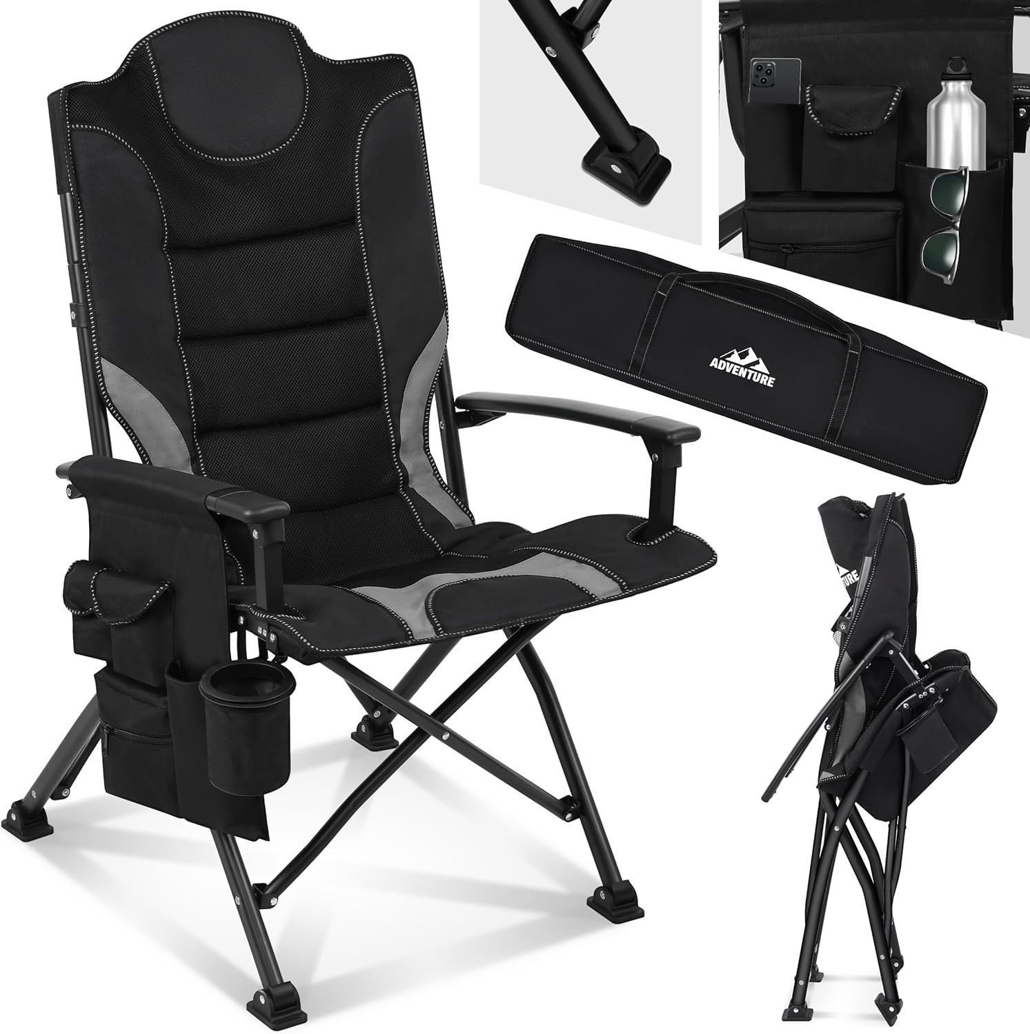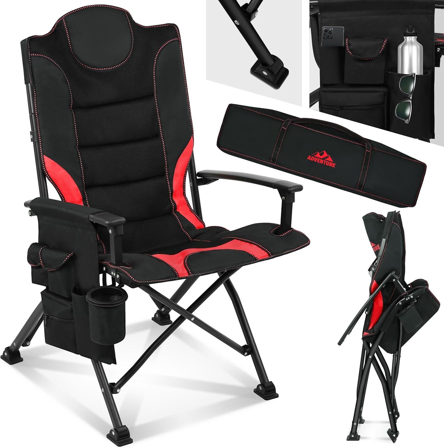 Campingstuhl Der Campingstuhl vereint herausragendes Design, erstklassigen Komfort und höchste Funktionalität. Dieser faltbare Stuhl bietet eine breite Sitzfläche, eine extra hohe gepolsterte Rückenlehne und stabile Armlehnen, die für maximalen Komfort sorgen. Zusätzlich bietet der Stuhl eine Vielza