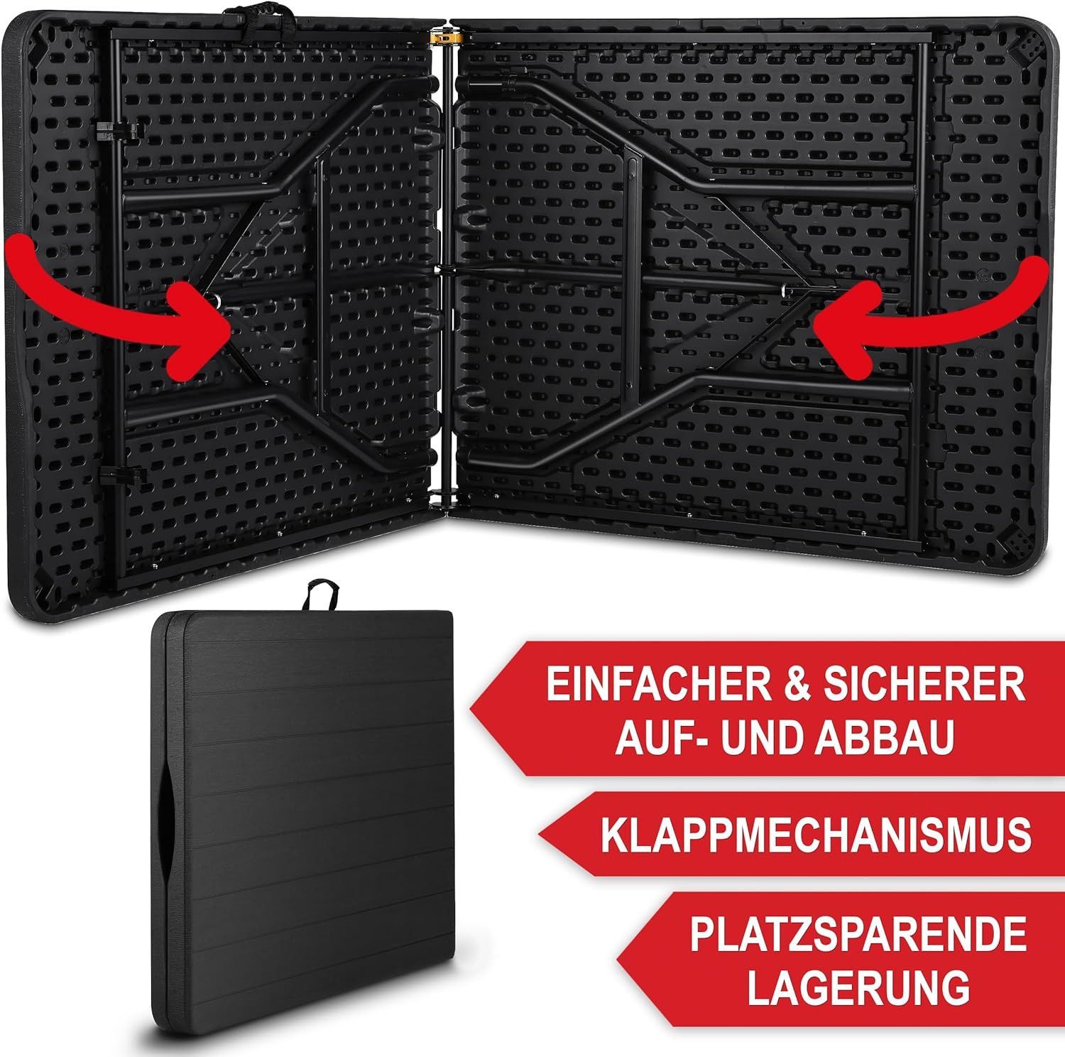 Klapptisch »Borkum« Der Klapptisch Borkum kombiniert praktische Funktionen mit einem ansprechenden Design in edler Holzoptik. Die wetterfeste und strapazierfähige Tischplatte kann bis zu 180 kg tragen und lässt sich mühelos reinigen – perfekt für Outdoor-Aktivitäten und den täglichen Gebrauch. Maße