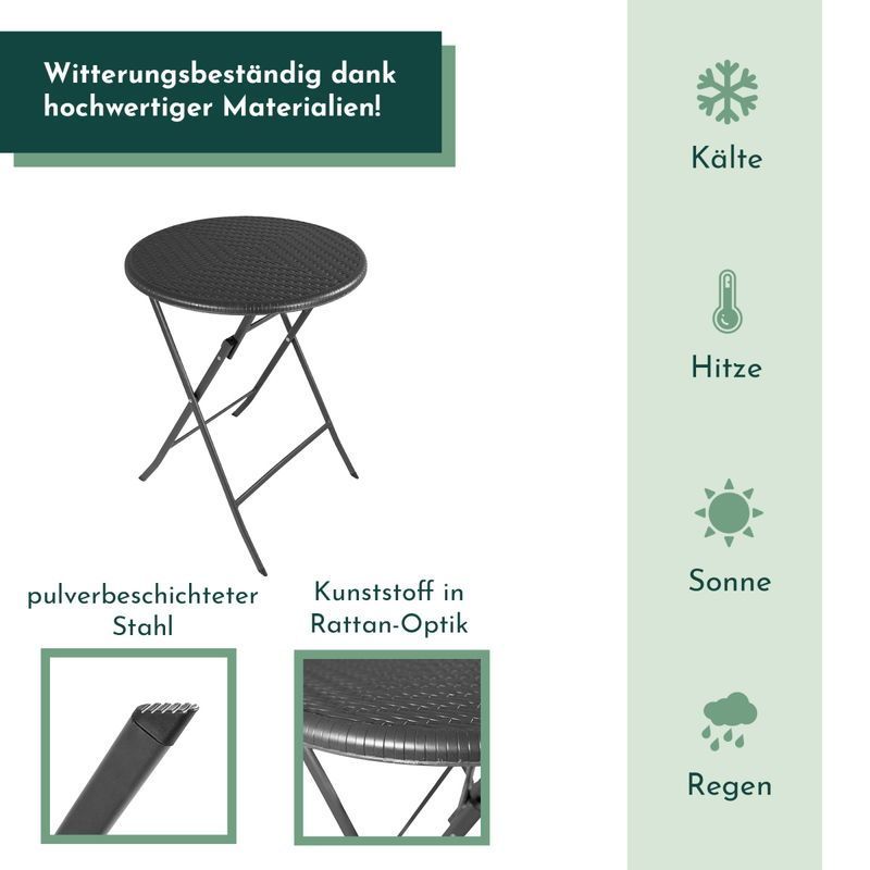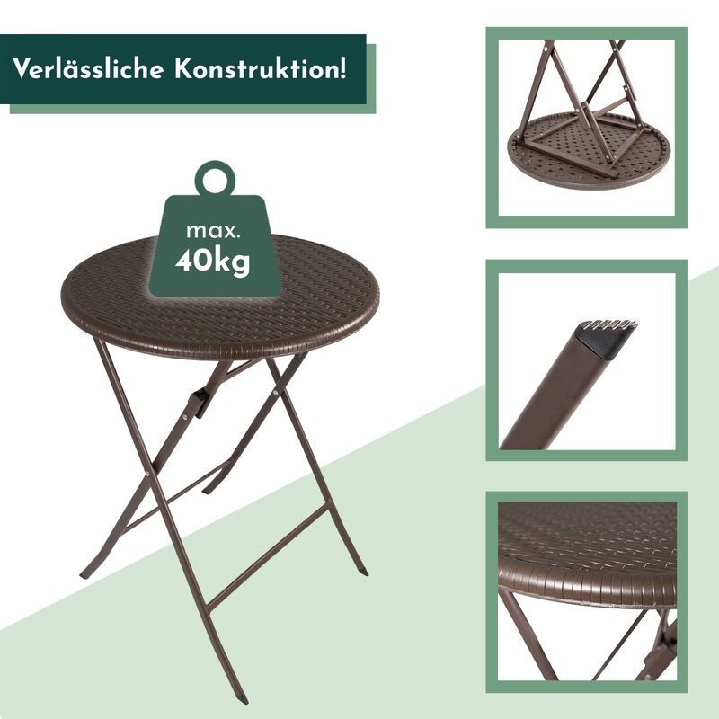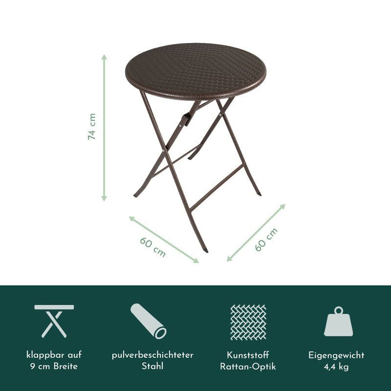 Klapptisch rund, Rattan-Optik, braun, 60 cm, Balkontisch, klappbar : braun