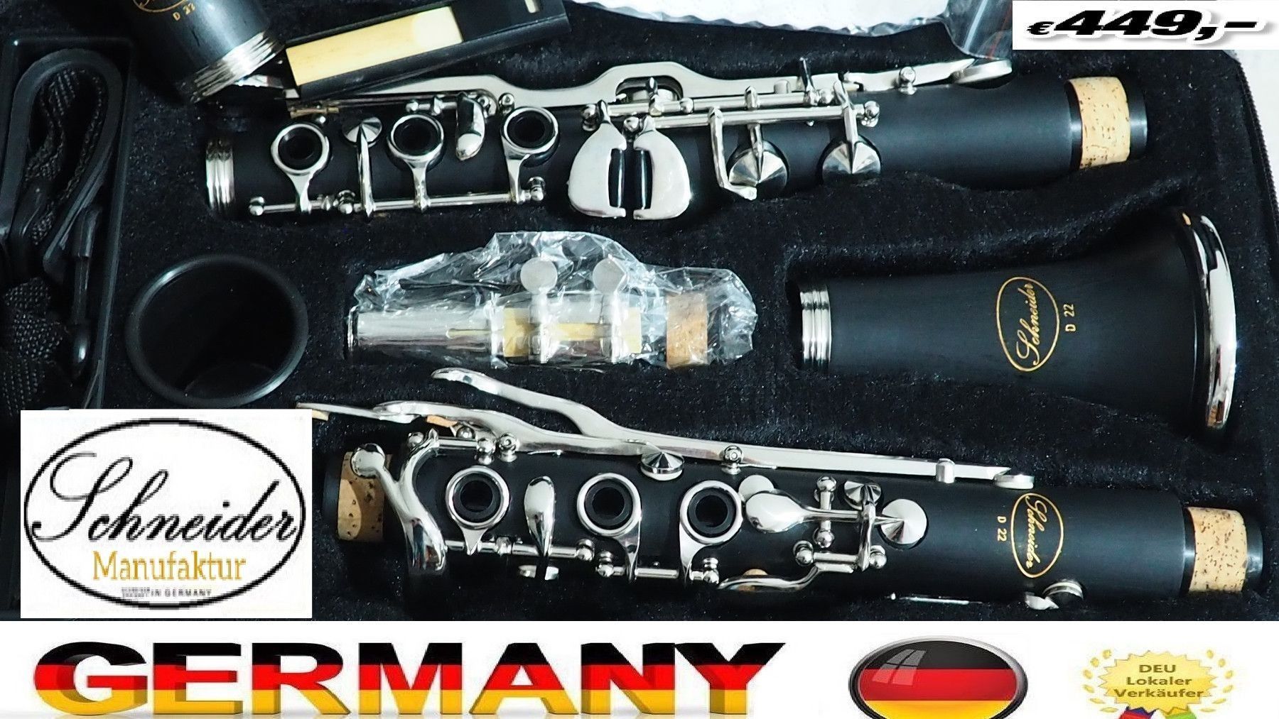 Klarinette Profi Vollsystem 28 Klappen SCHNEIDER D 28 inkl. Zubehör