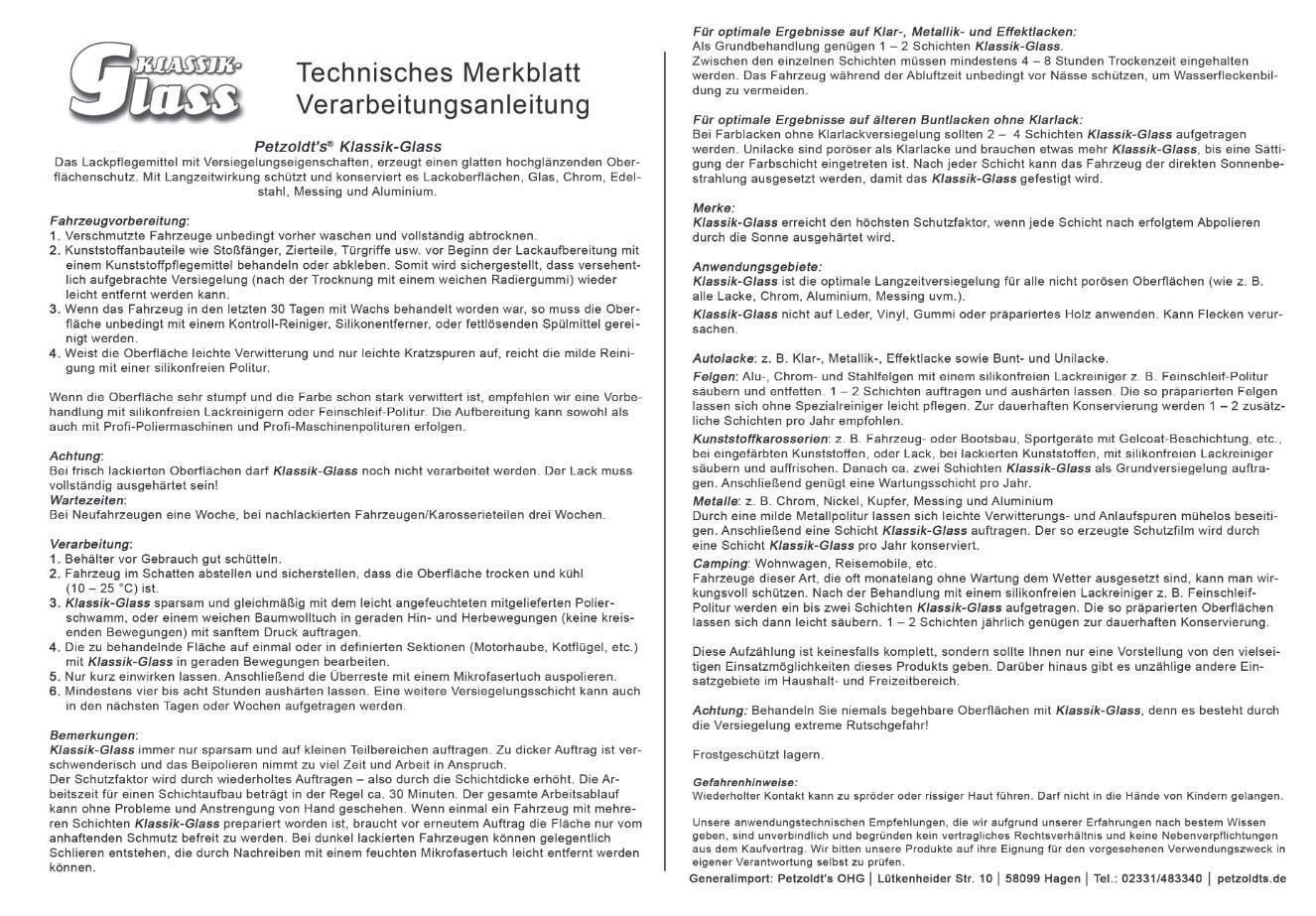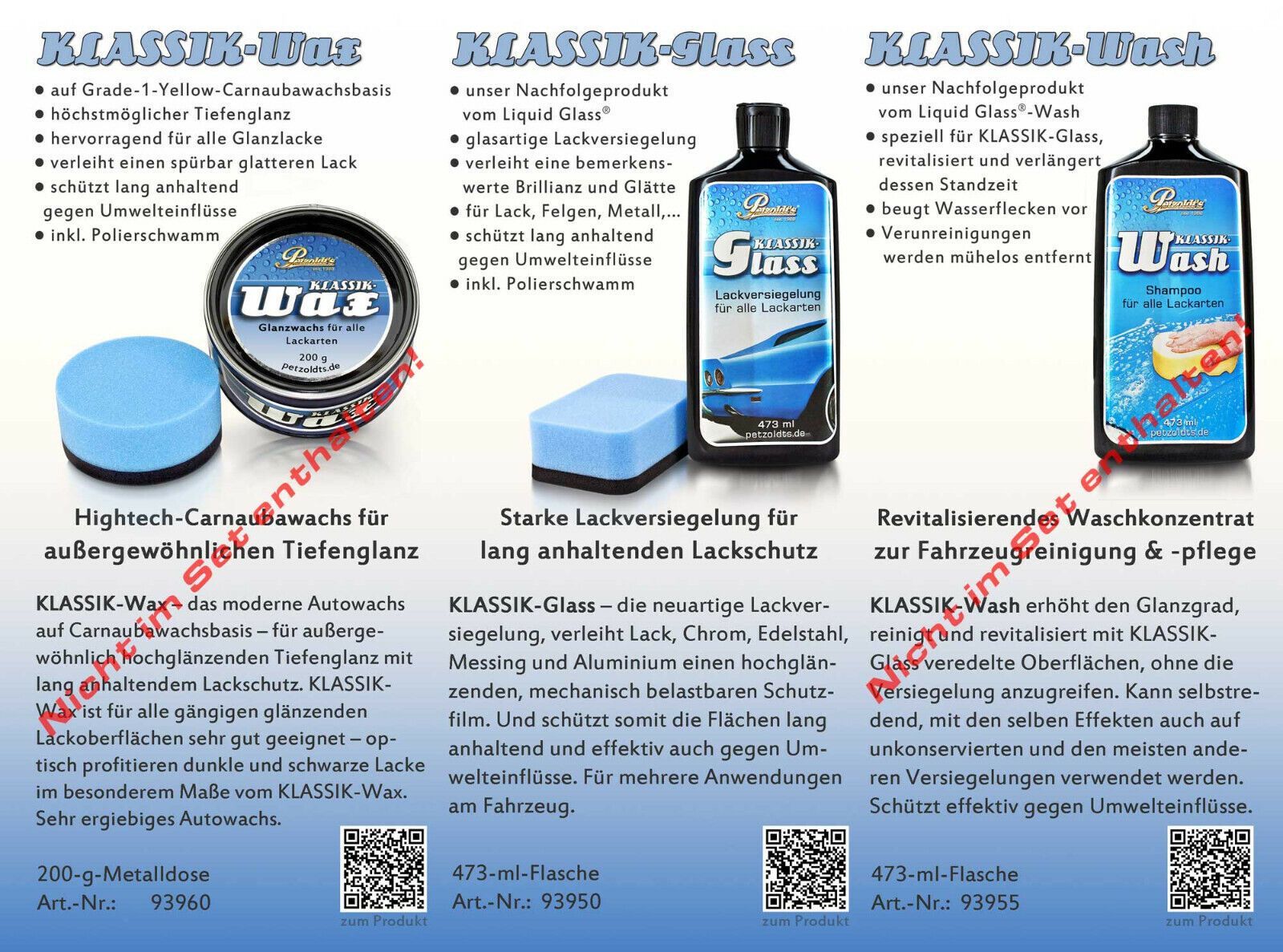 Petzoldt's KLASSIK-Glass ® – Lackversiegelungsset Unser Liquid Glass ® Nachfolgeprodukt! Glasartige Lackversiegelung mit Langzeitschutz, einer enormer Brillianz und Glätte. Ideal für Lack, Metall und lackiertes Metall wie (glanzlackierte) Felgen. Schützt gegen Umwelteinflüsse. Auf Felgen schützt Kla