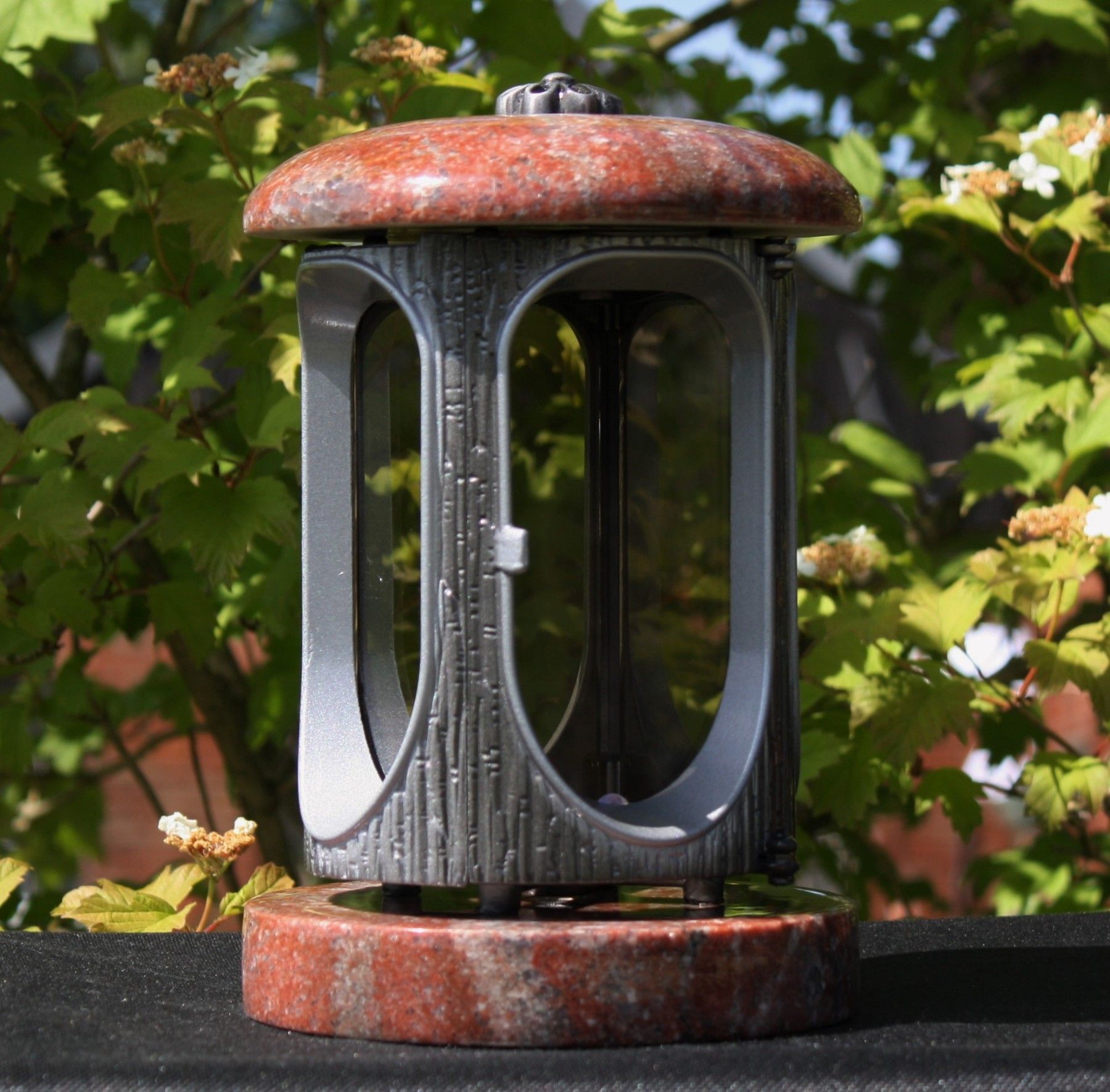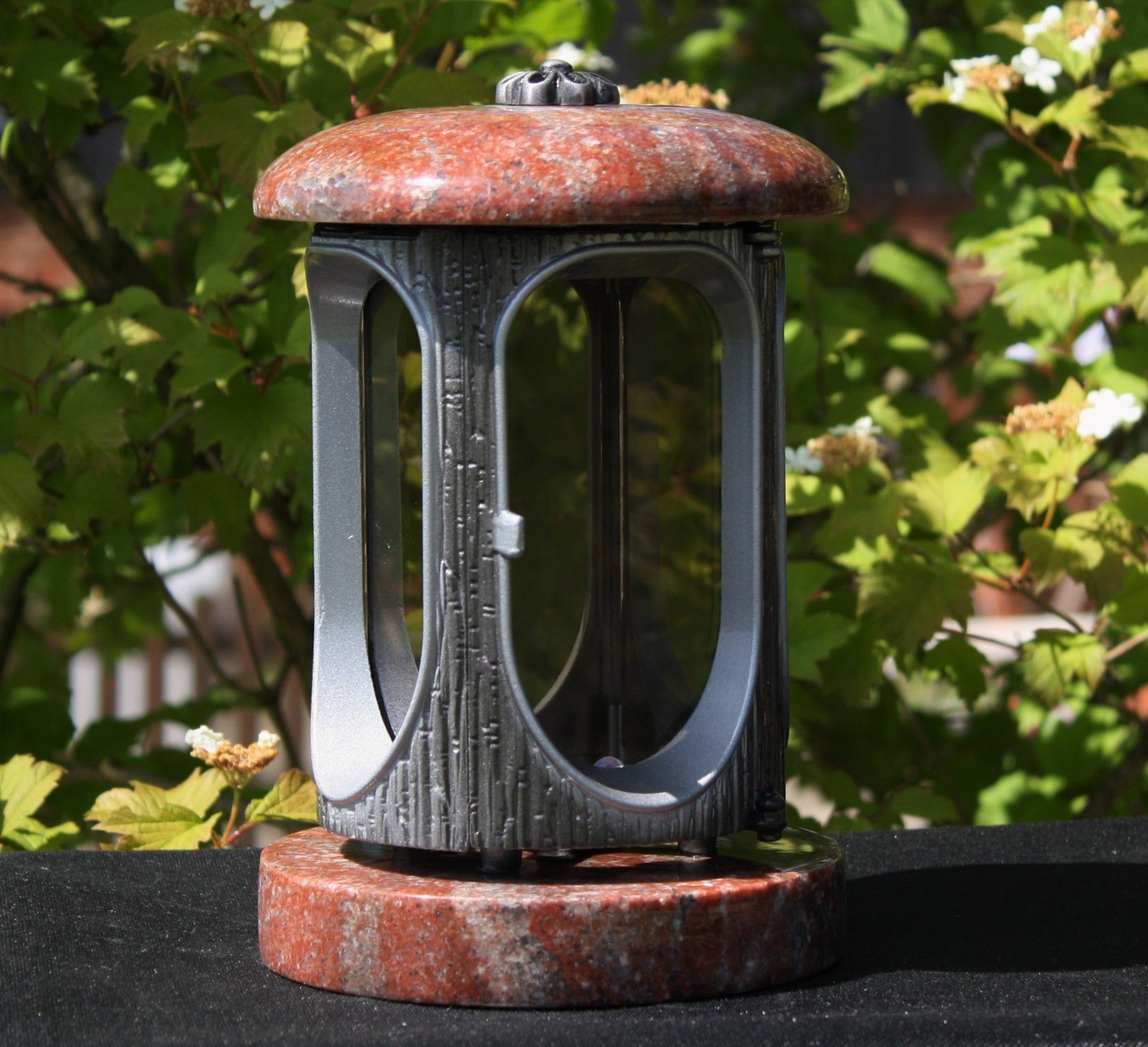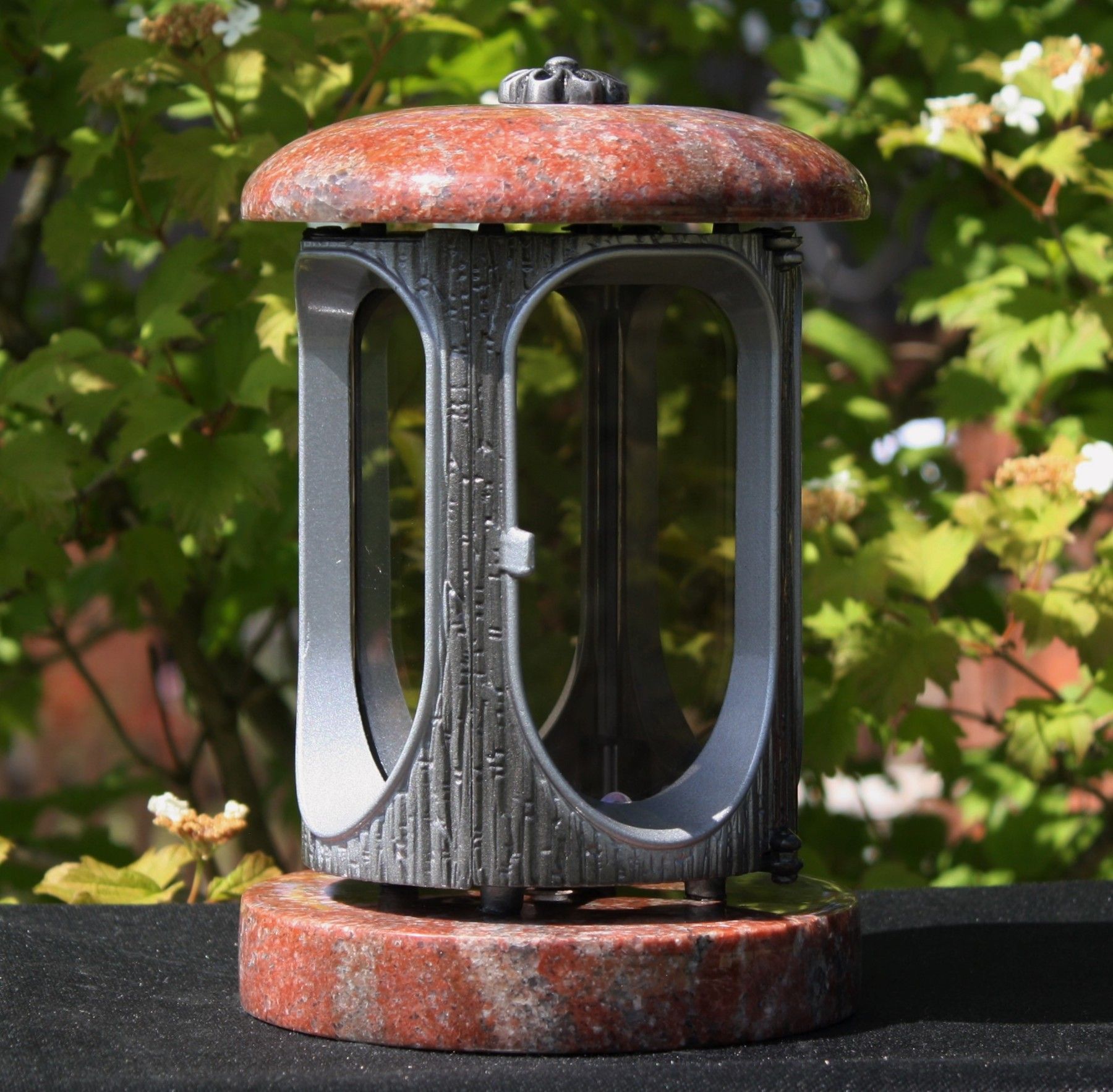 klassische Grab-Laterne mit Rosette Grablicht Grableuchte Grabschmuck aus Granit
