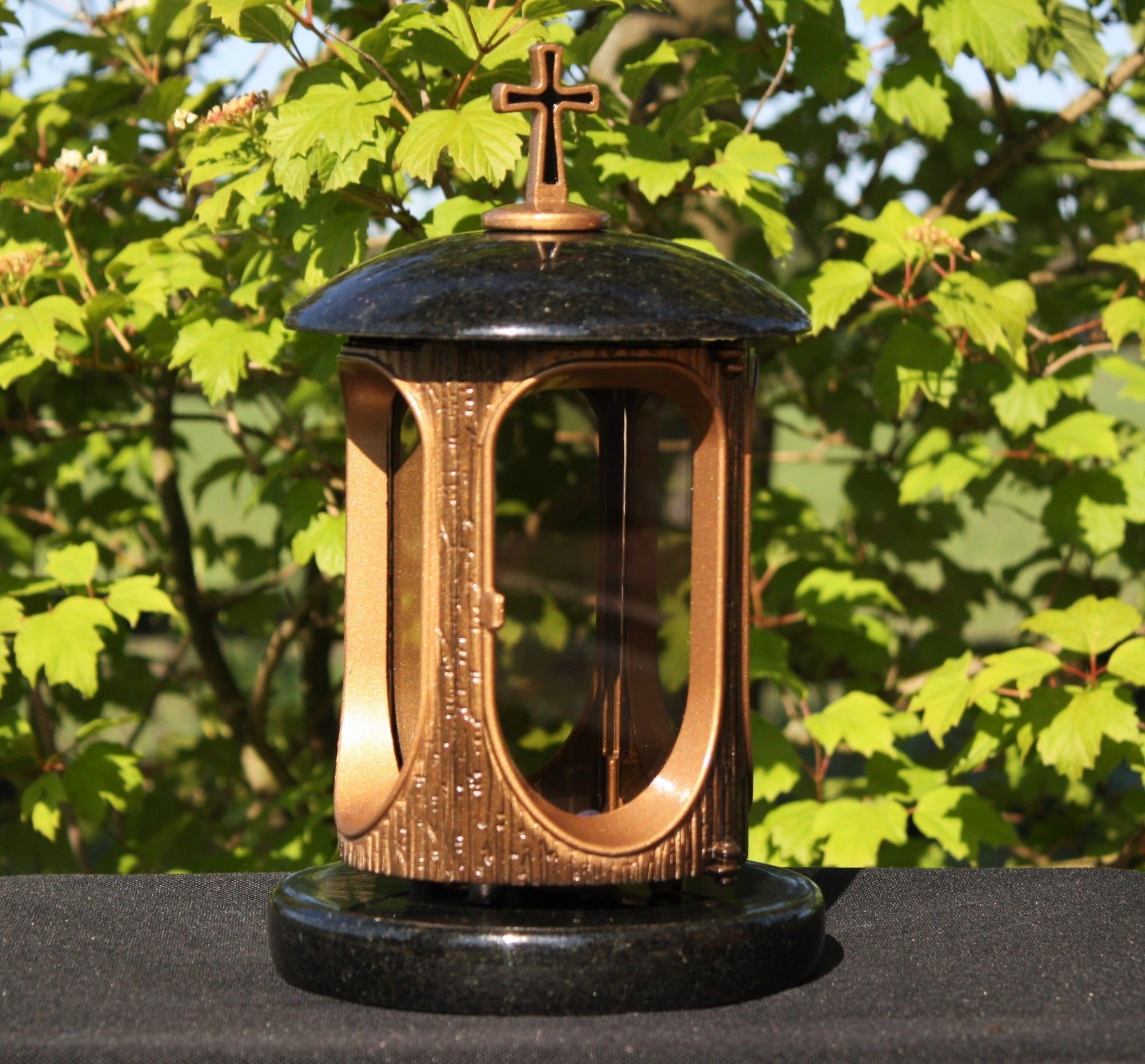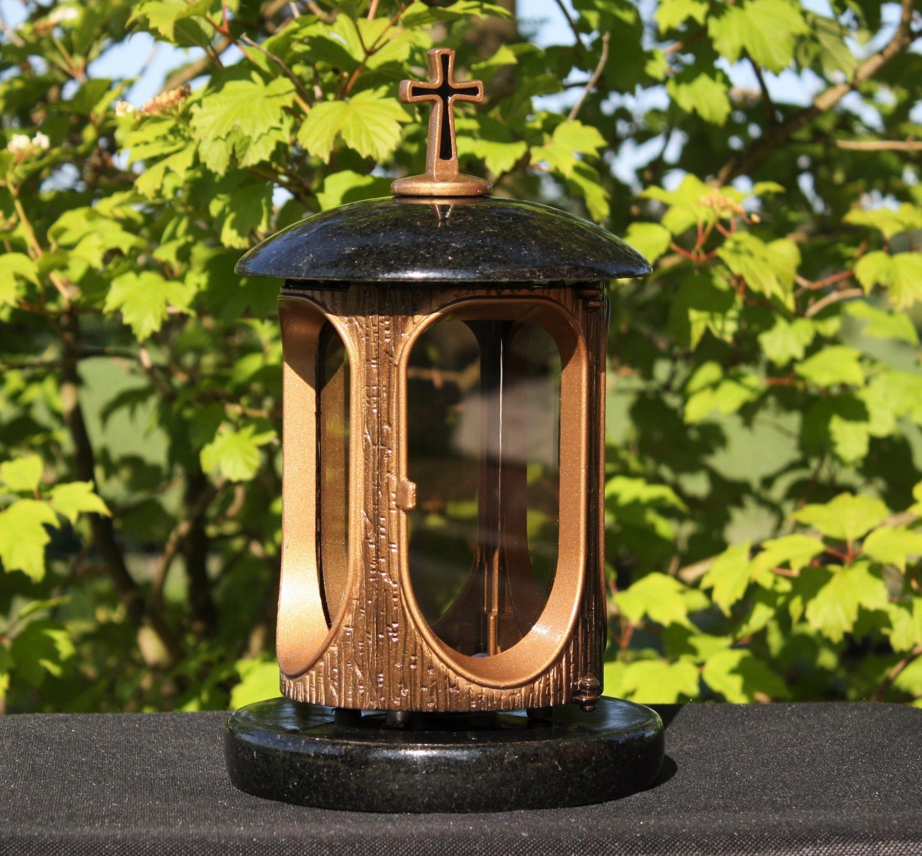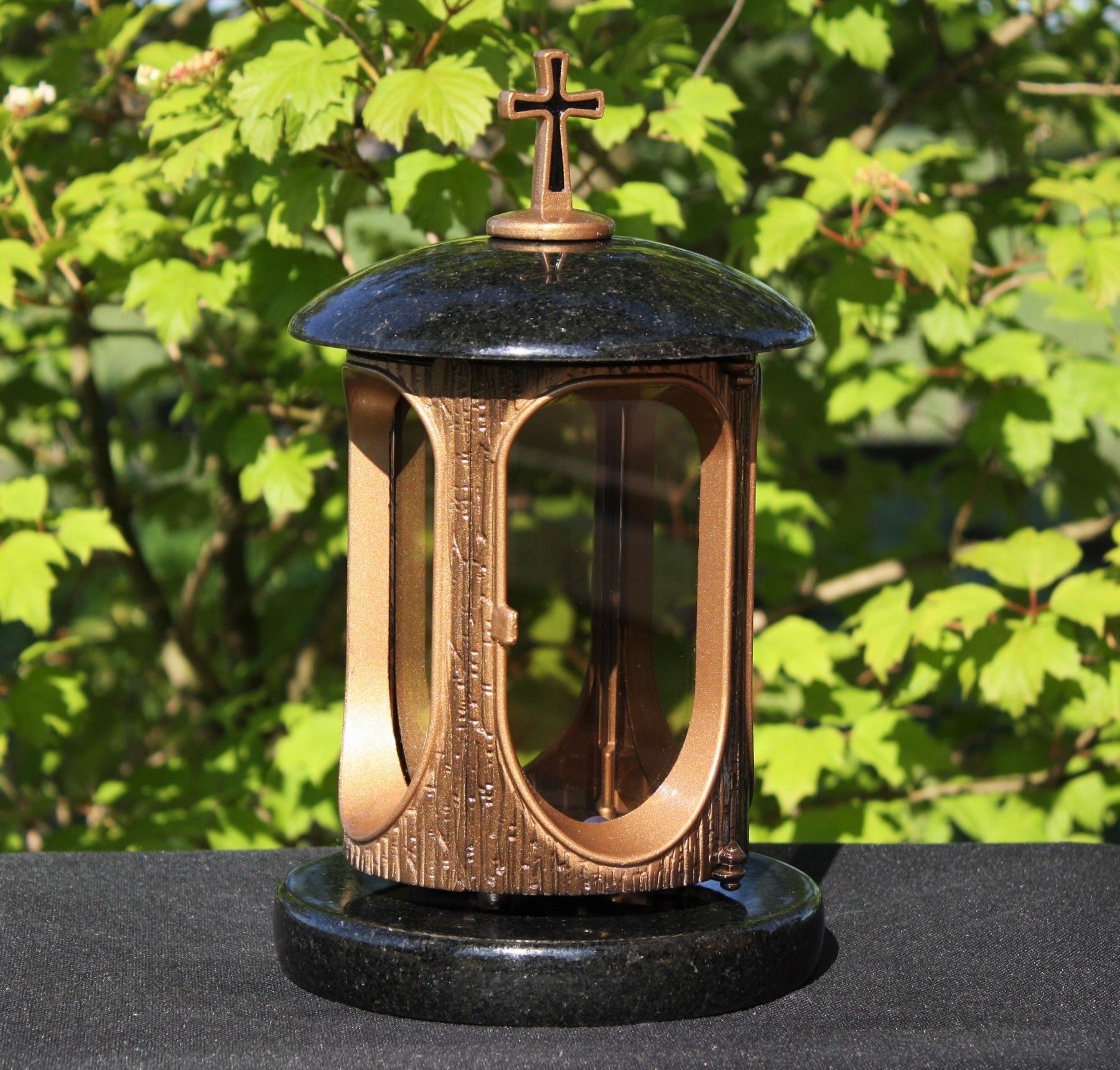 klassische Grablaterne mit Kreuz Grablicht Grableuchte Grab-Schmuck aus Granit
