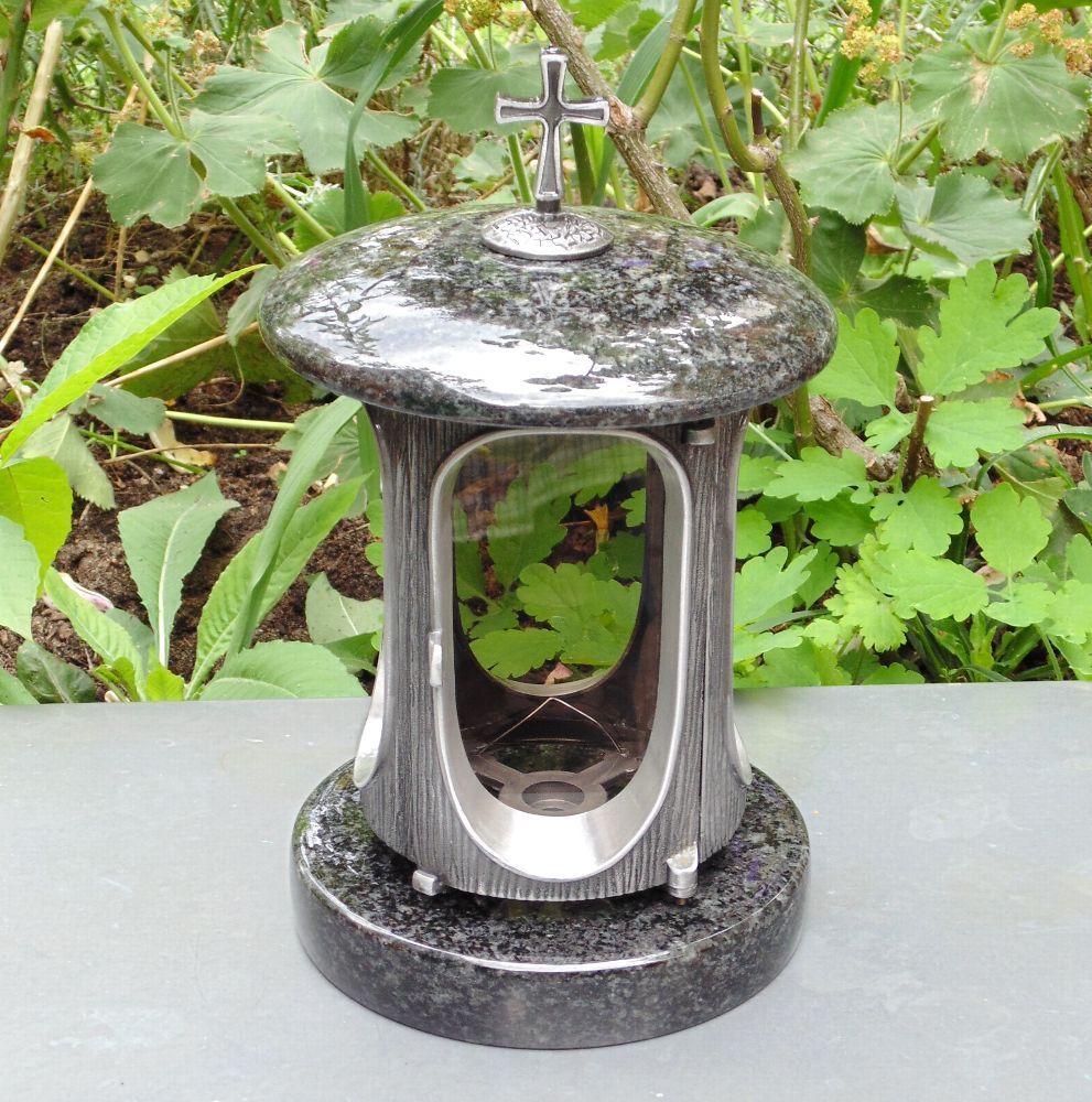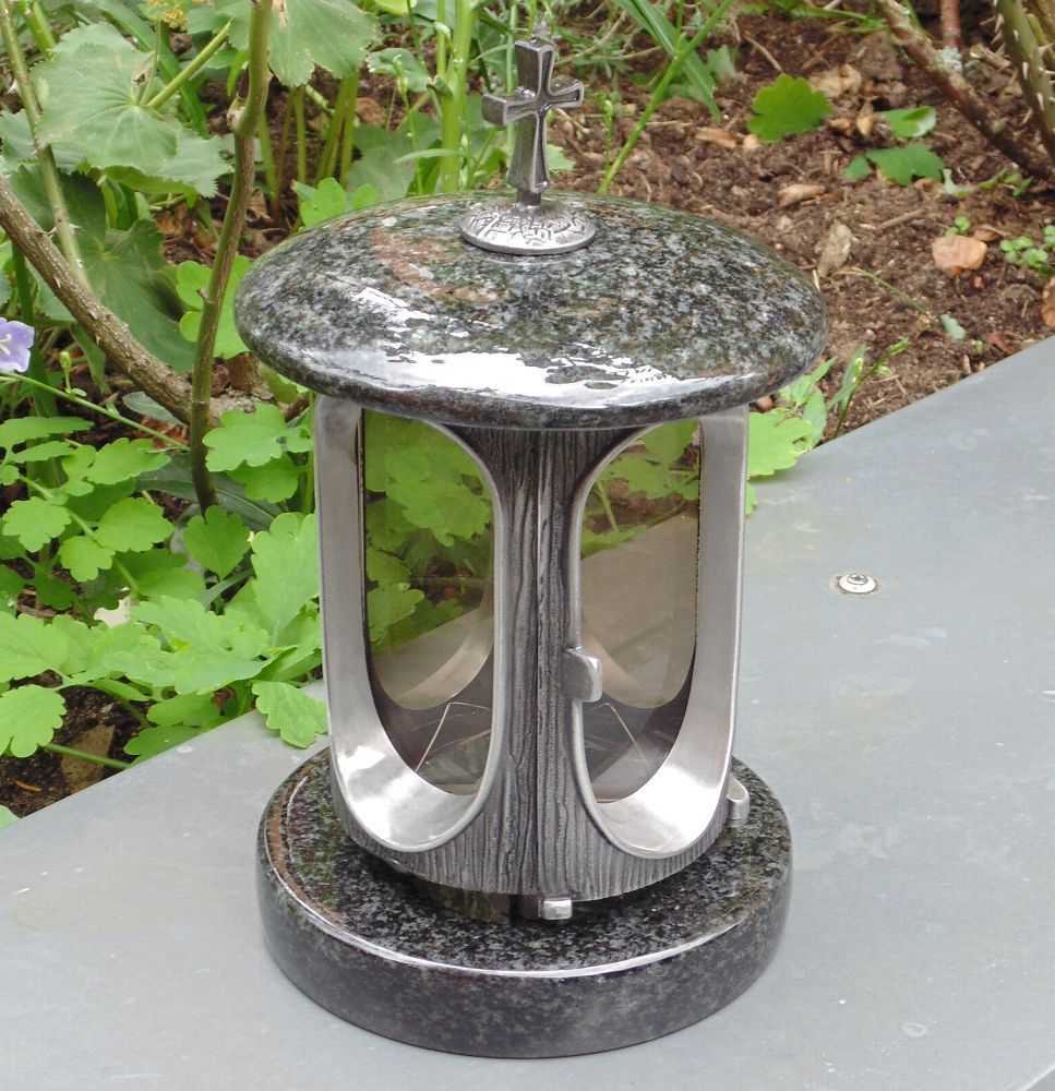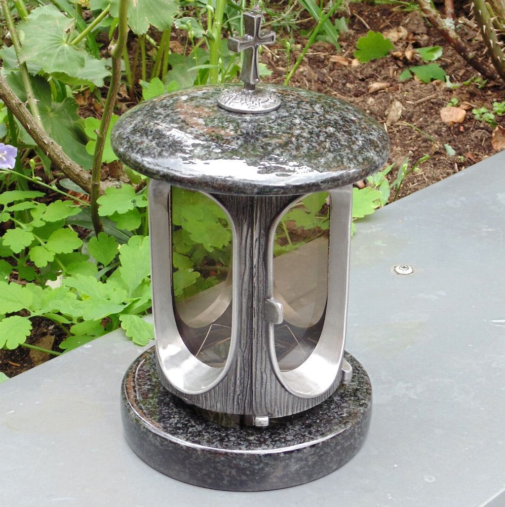 klassische Grablaterne mit Kreuz Grablicht Grableuchte Grabschmuck Impala Granit