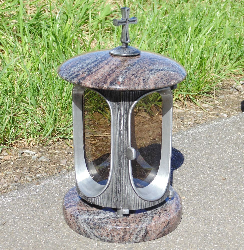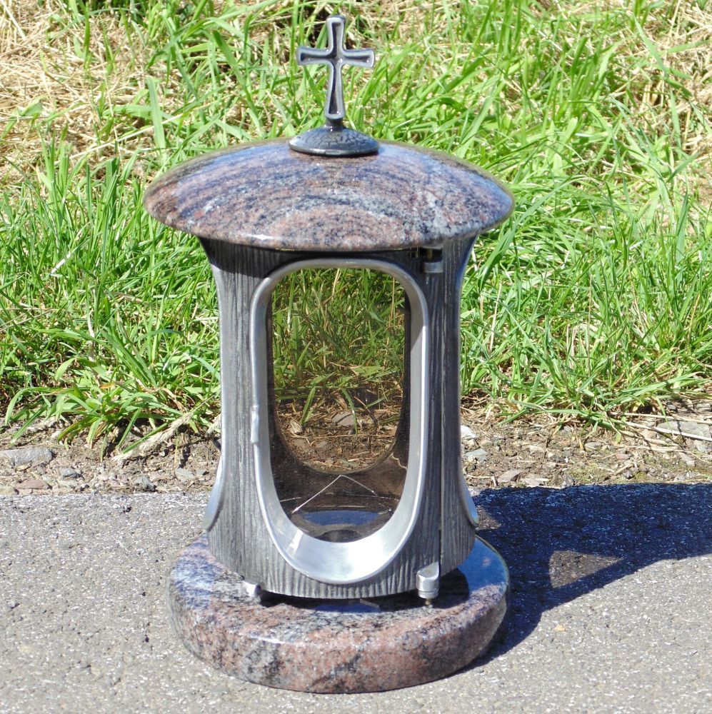 klassische Grablaterne mit Kreuz Grablicht Grableuchte Grabschmuck Paradiso-Granit