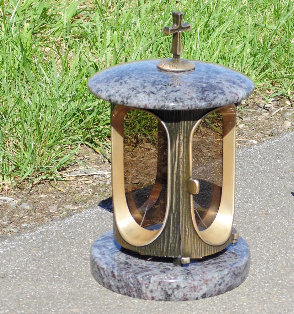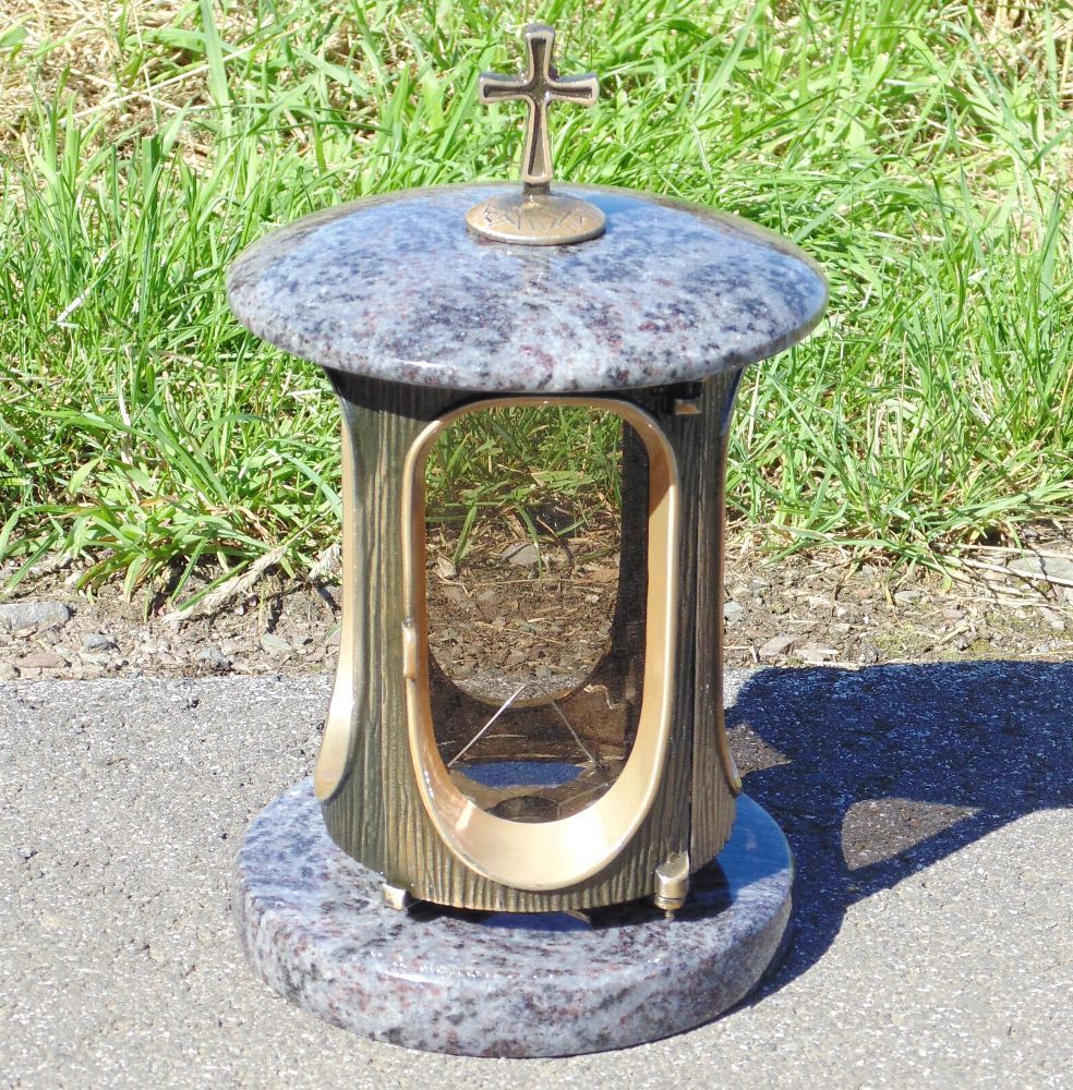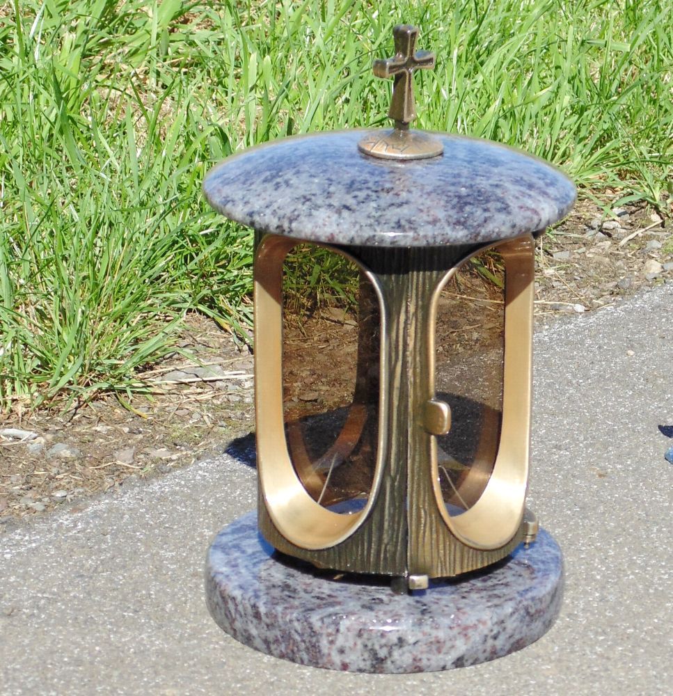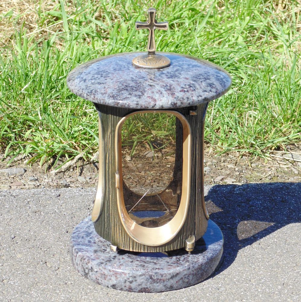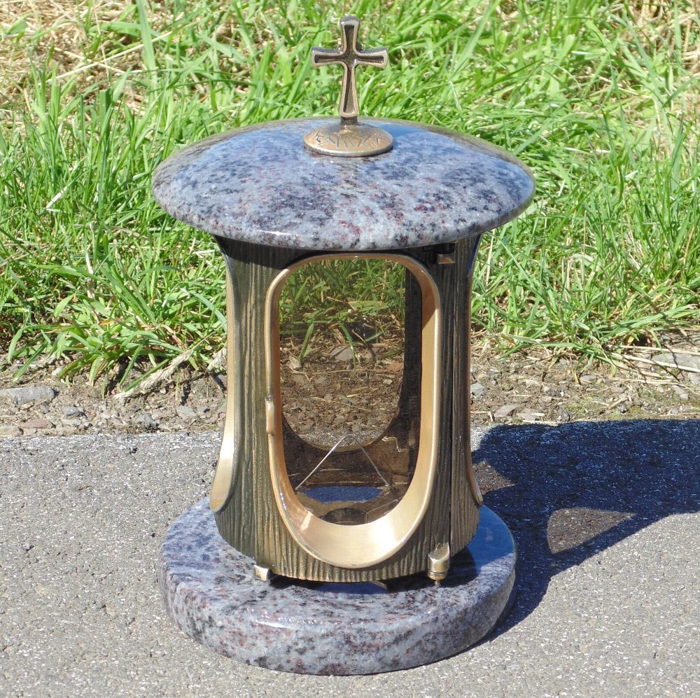 klassische Grablaterne mit Kreuz Grablicht in Farbe Bronze Orion-Granit