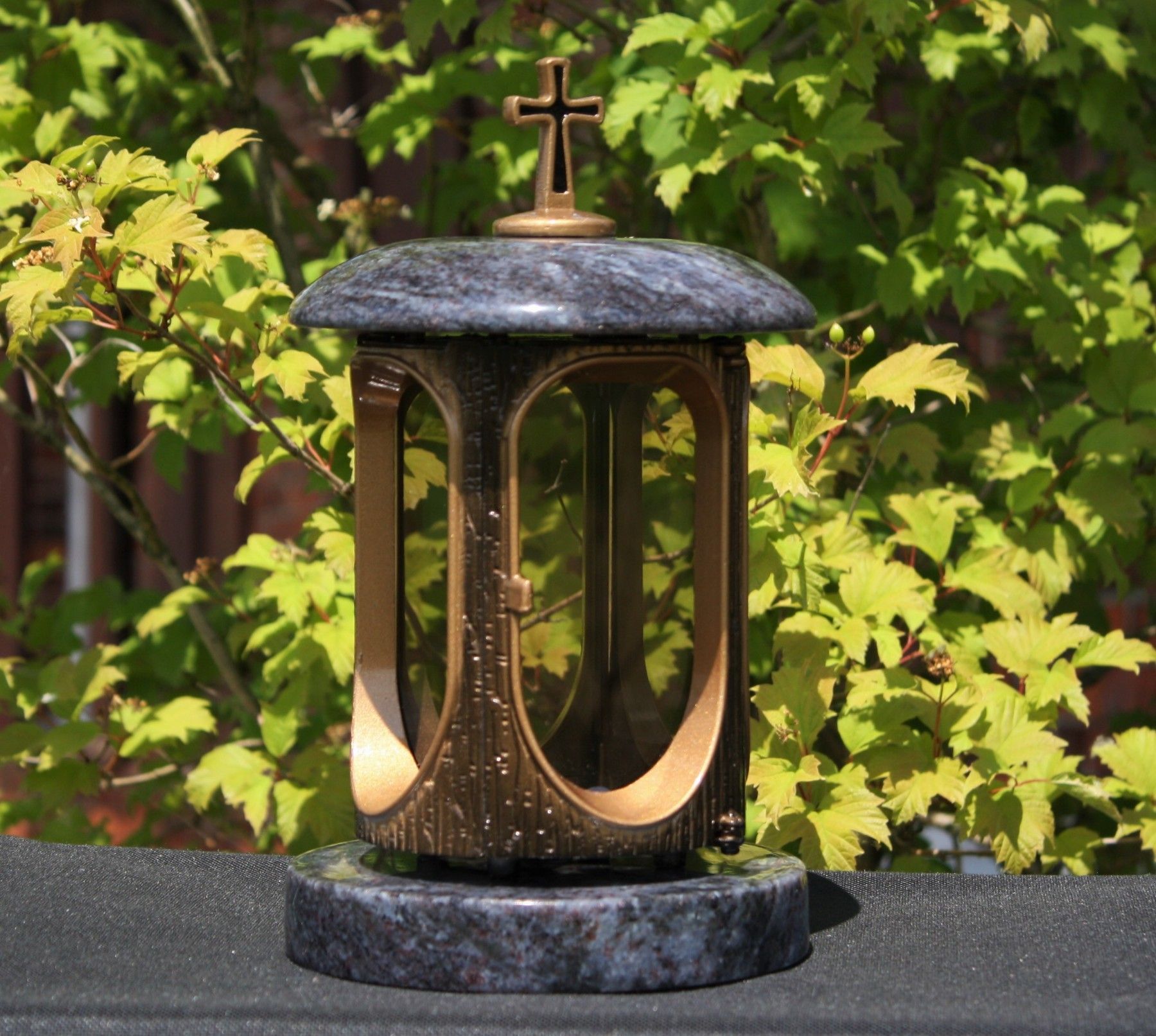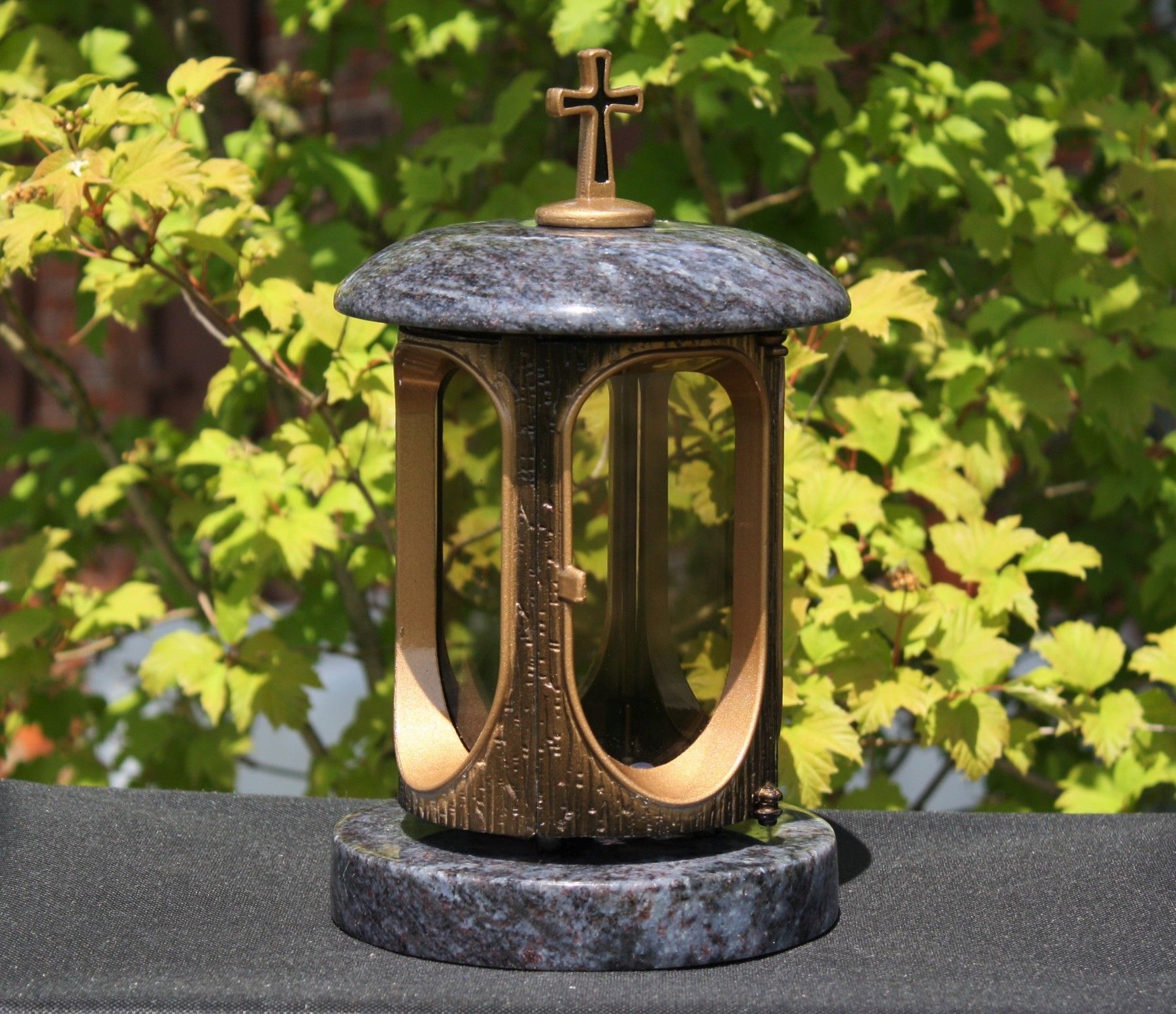 klassische Grablaterne mit Kreuz Grablicht Orion-Granit Friedhof-Laterne