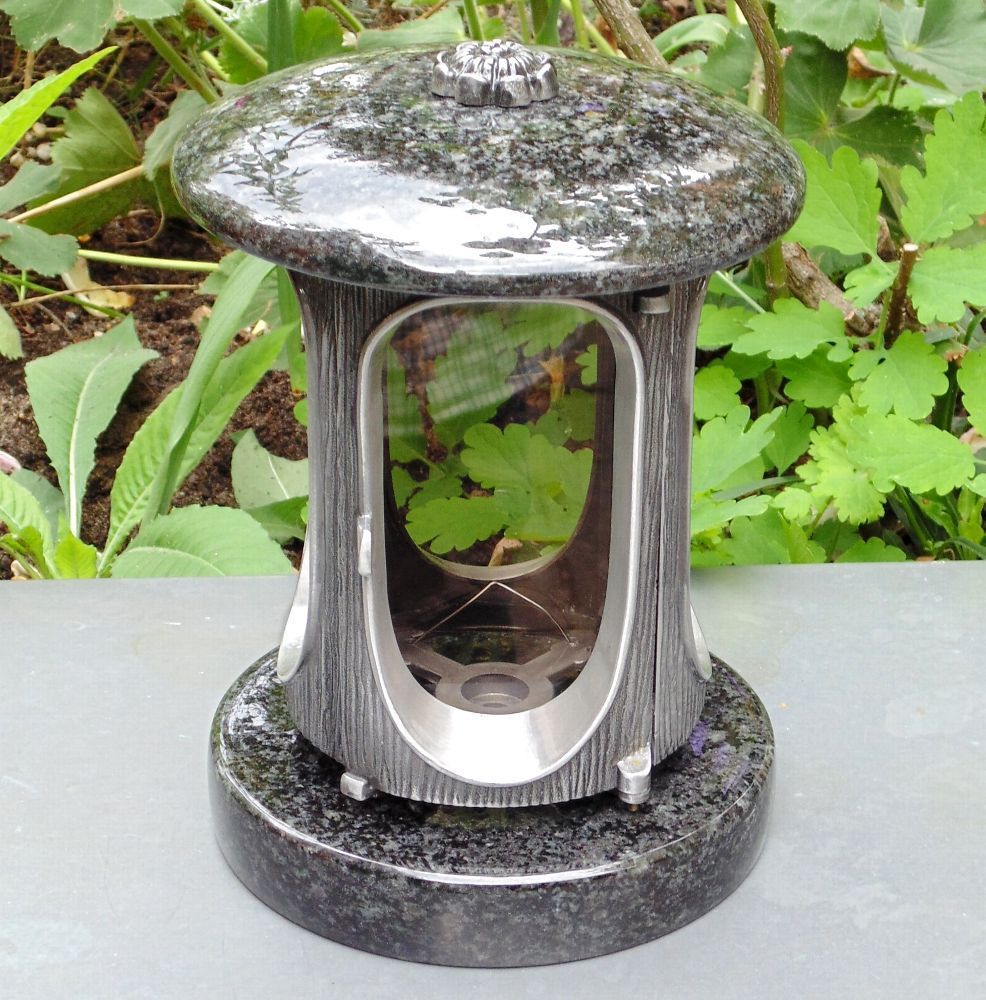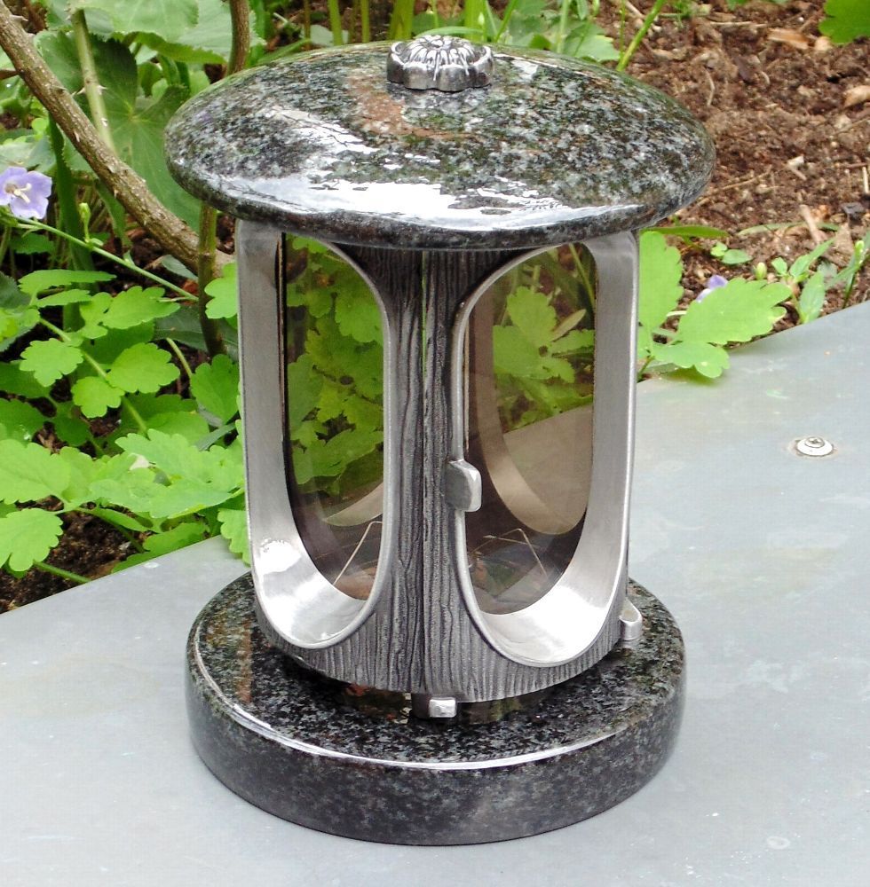 klassische Grablaterne mit Rosette Grablicht Grableuchte Grabschmuck Impala Granit