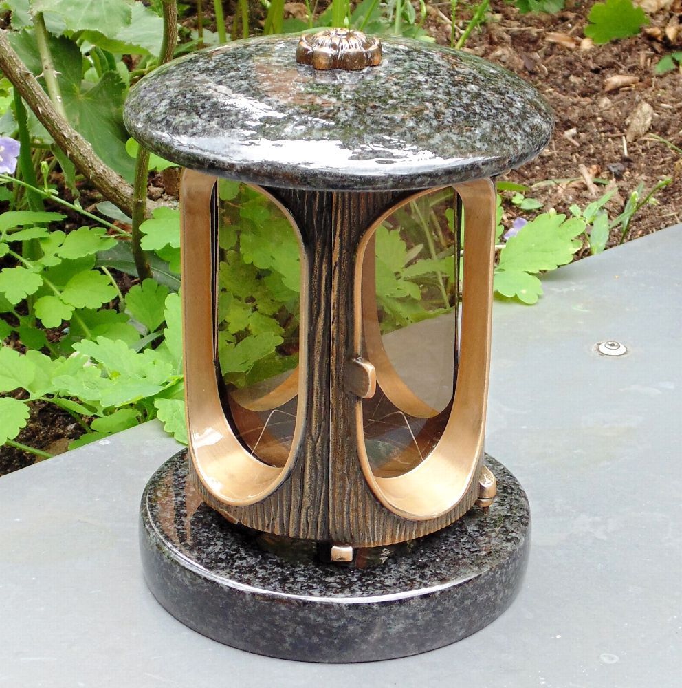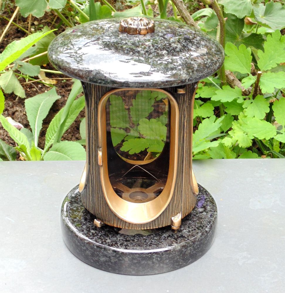 klassische Grablaterne mit Rosette Grablicht Grableuchte Grabschmuck Impala Stein