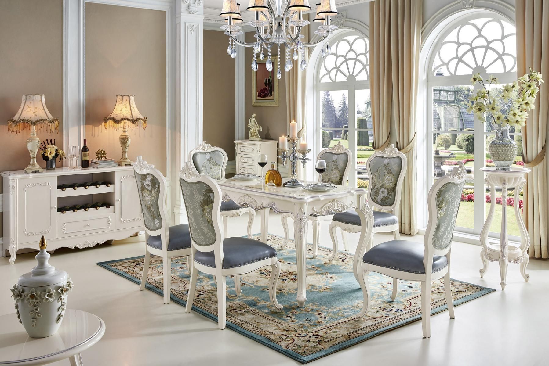 Essgruppe Esszimmer Esstisch Stühle Holz Set 12tlg Grau Barock Sideboard