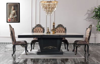 Klassischer Hochglanz Antik Stil Barock Tisch mit 4 Stühlen Stuhl Set Garnitur
