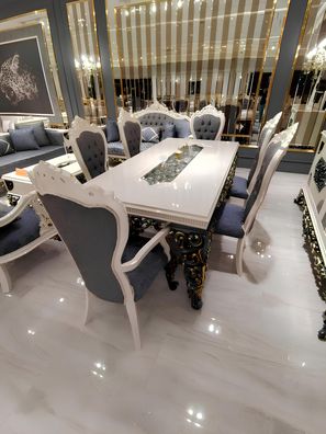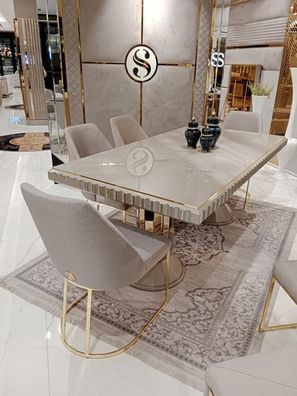 Designer Tisch + 6 Stühle Garnituren Komplett Wohnzimmer Esszimmer Stuhl Polster