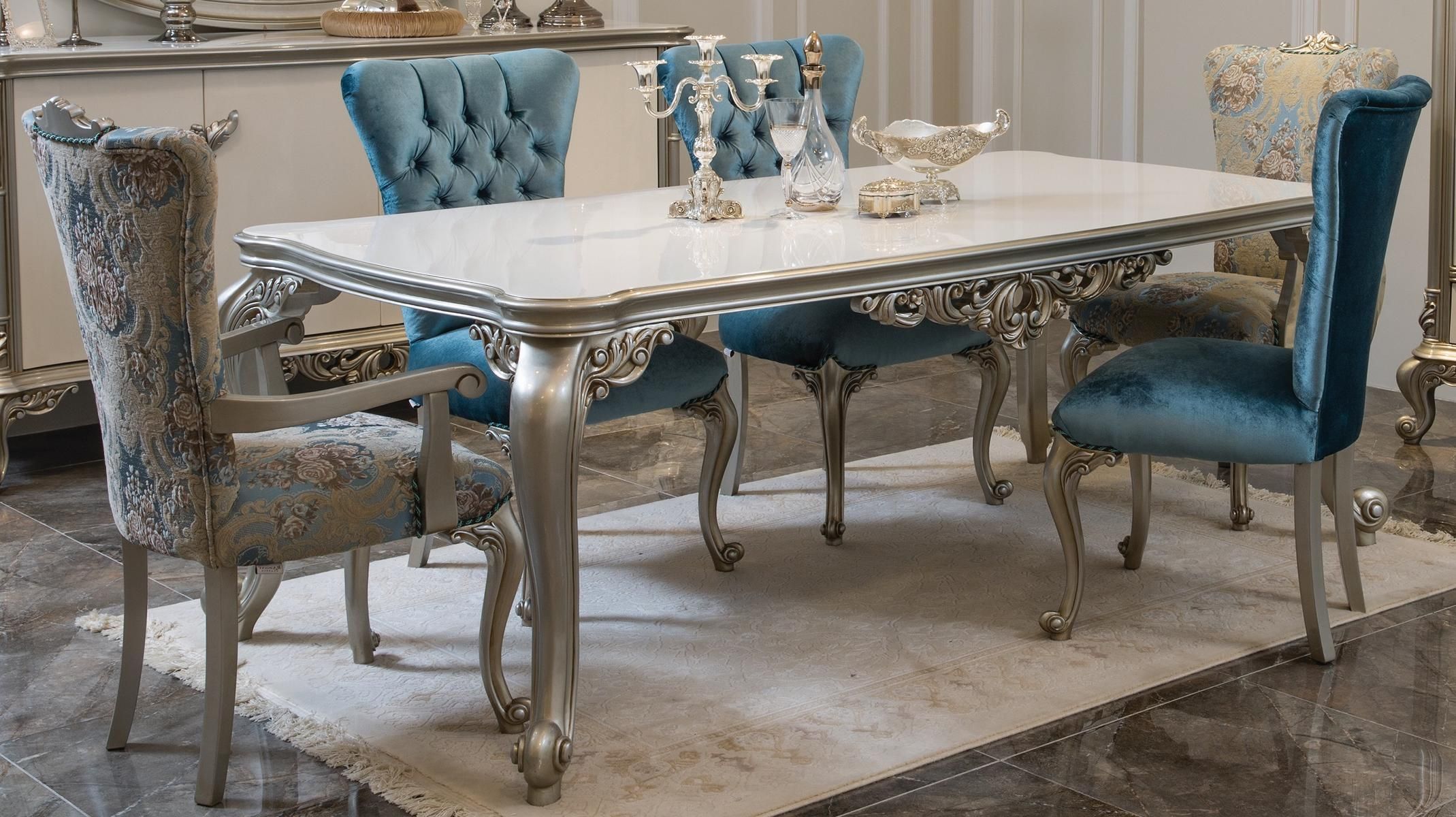 Klassische Tische Möbel Esstisch Weiß Silberner Tisch Esstische Luxus Holztisch