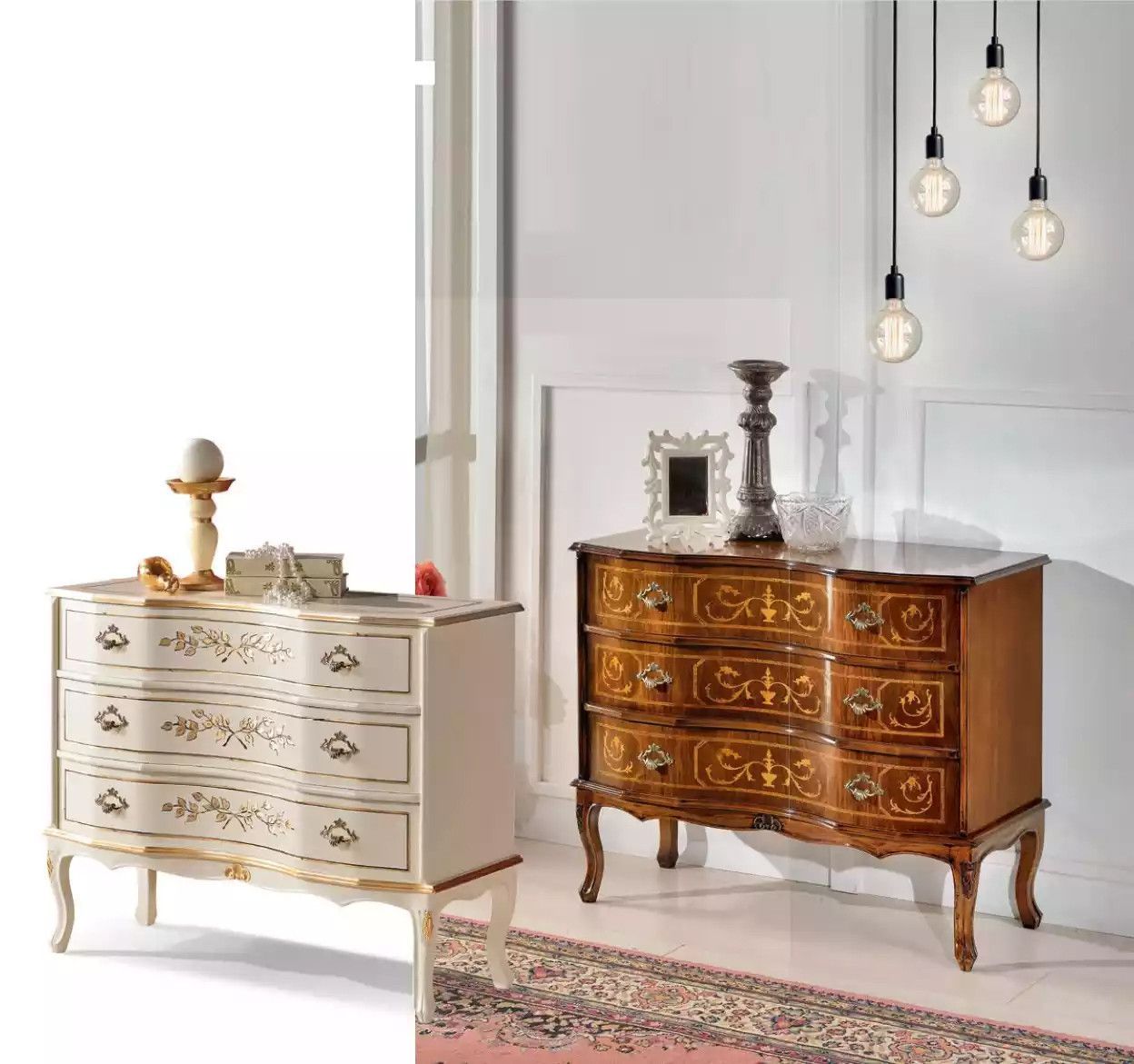 Klassische Weiße Beistellkommode 3x Schubladen Echtholz Wohnzimmer Möbel